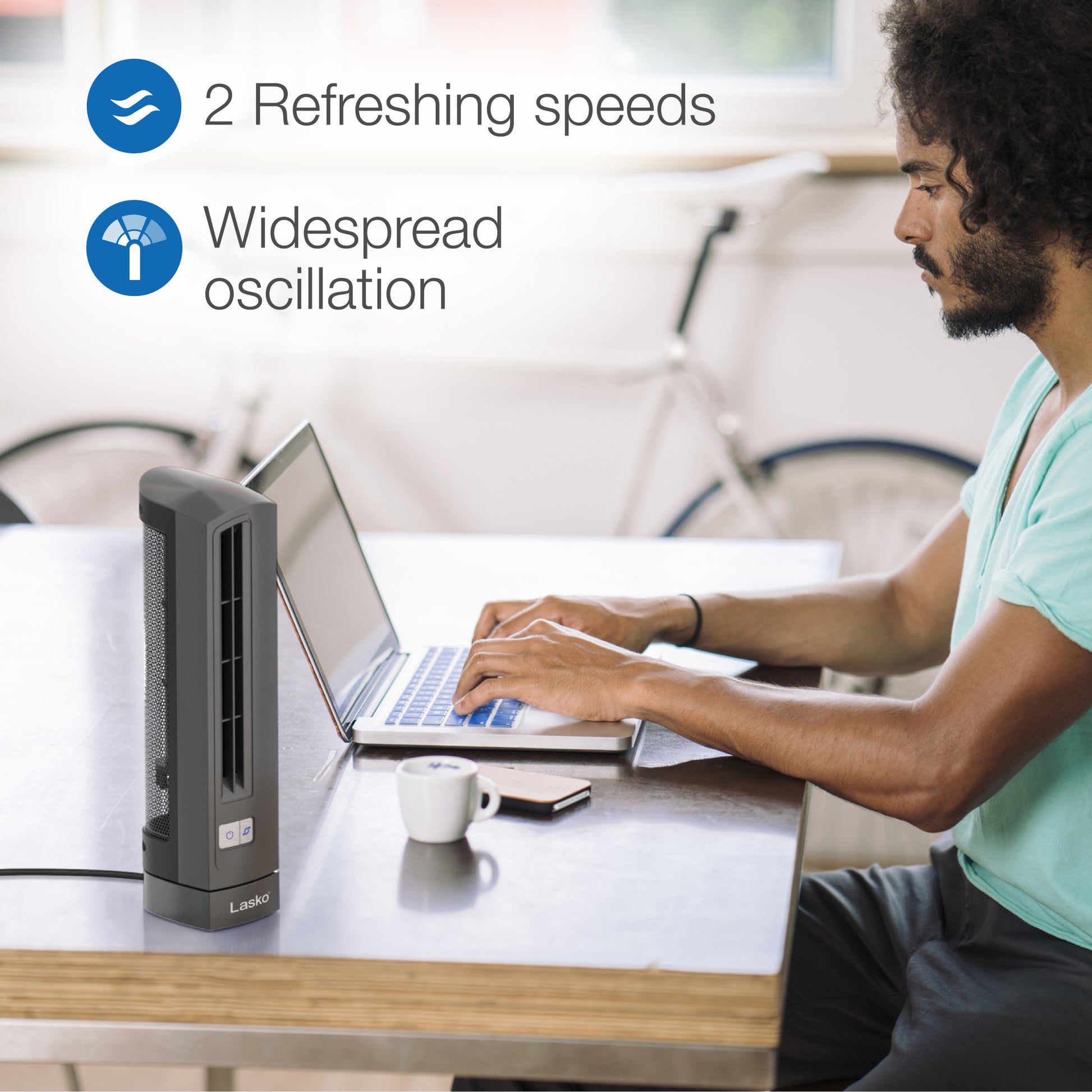 Lasko 14" Air Stick Desk Ultra-Slim Oscillating 2-Speed Table Fan, 4000, Gray
