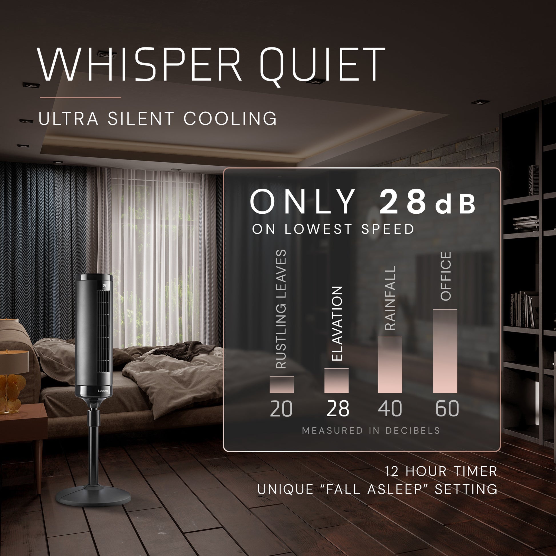 Quiet Comfort Technology: WhisperForce™ DC motor makes this quiet electric fan run at just 22dBA—21% quieter than our previous AC motor fan. Perfect for bedrooms, nurseries, or focused workspaces.