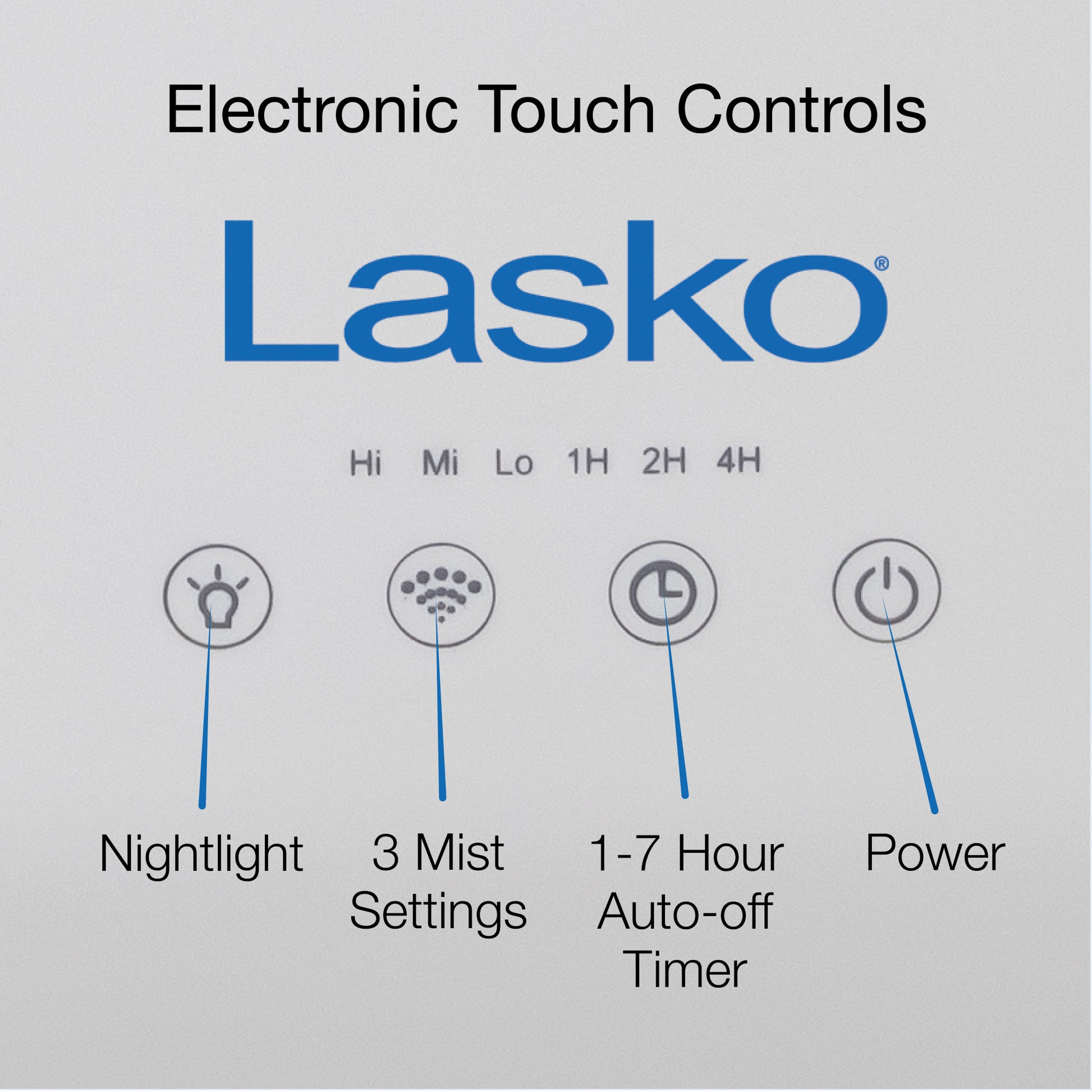 Simple Electronic Touch Controls: Intuitive panel makes it easy to adjust mist, timer, and lighting with the touch of a button.