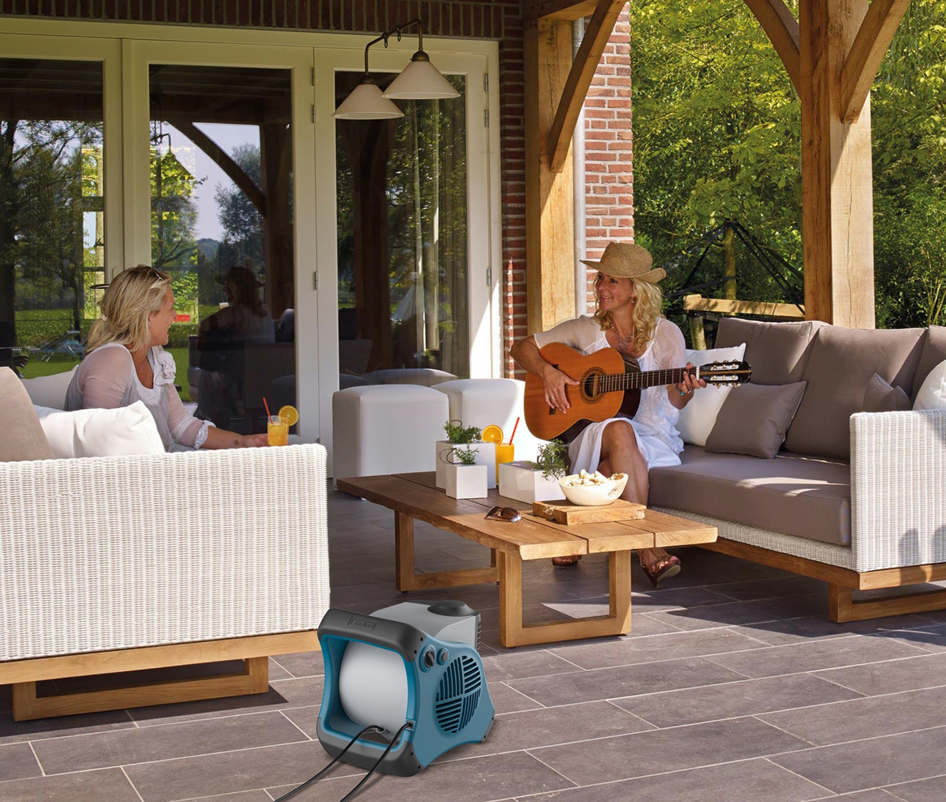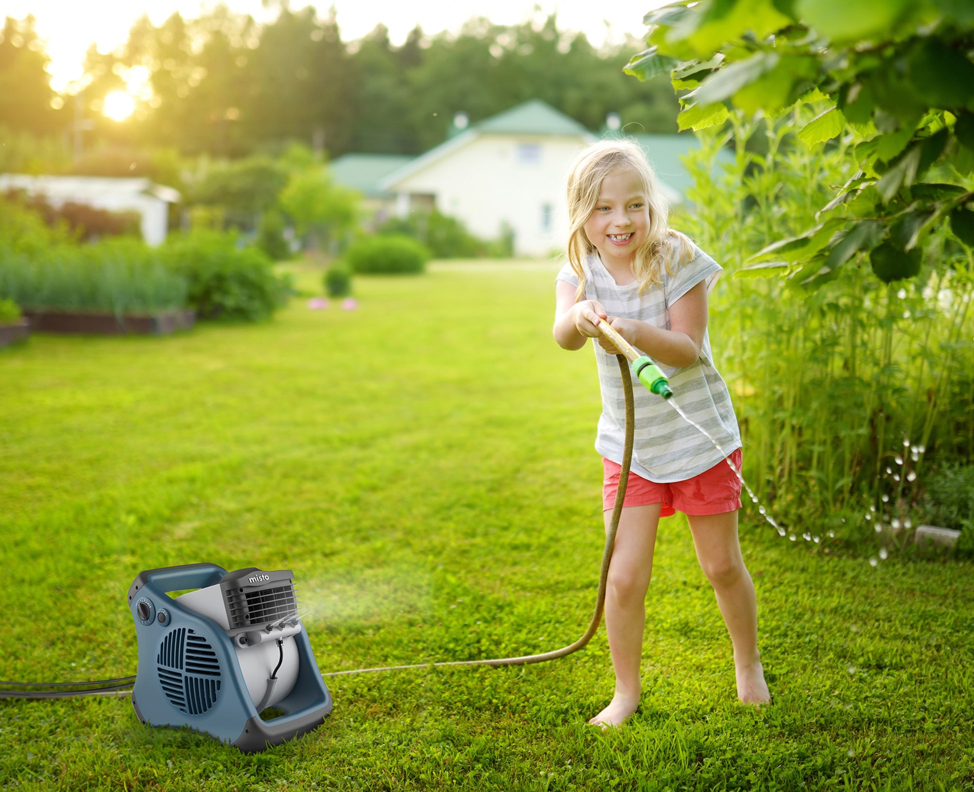 Refresh your life outdoors with the Misto® Outdoor Misting fan by Lasko. Ideal for keeping you cool during outdoor activities, the fan uses a hose hook-up to create a breezy fine mist of water that can reduce air temperature up to 25°. Built for outdoor use, this fan is weather, UV, and rust resistant and has an in-line GFCI with 3-prong grounded plug. Use the Misto on decks, on patios, at sports events, for gardening projects, at family picnics--anywhere you need to feel cool and comfortable when outdoor temperatures soar.