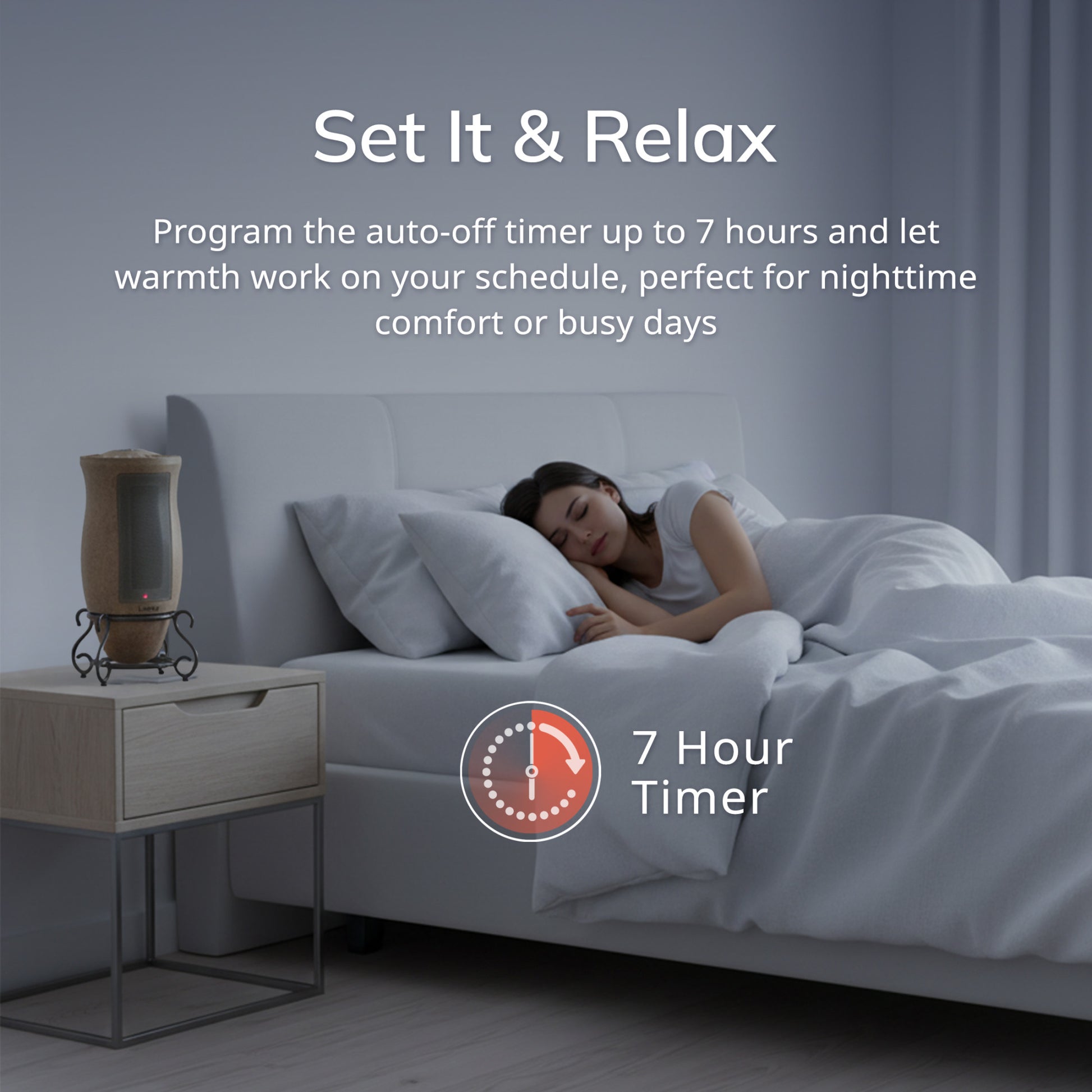 The auto-off timer can be programmed from 1 hour to 7 hours