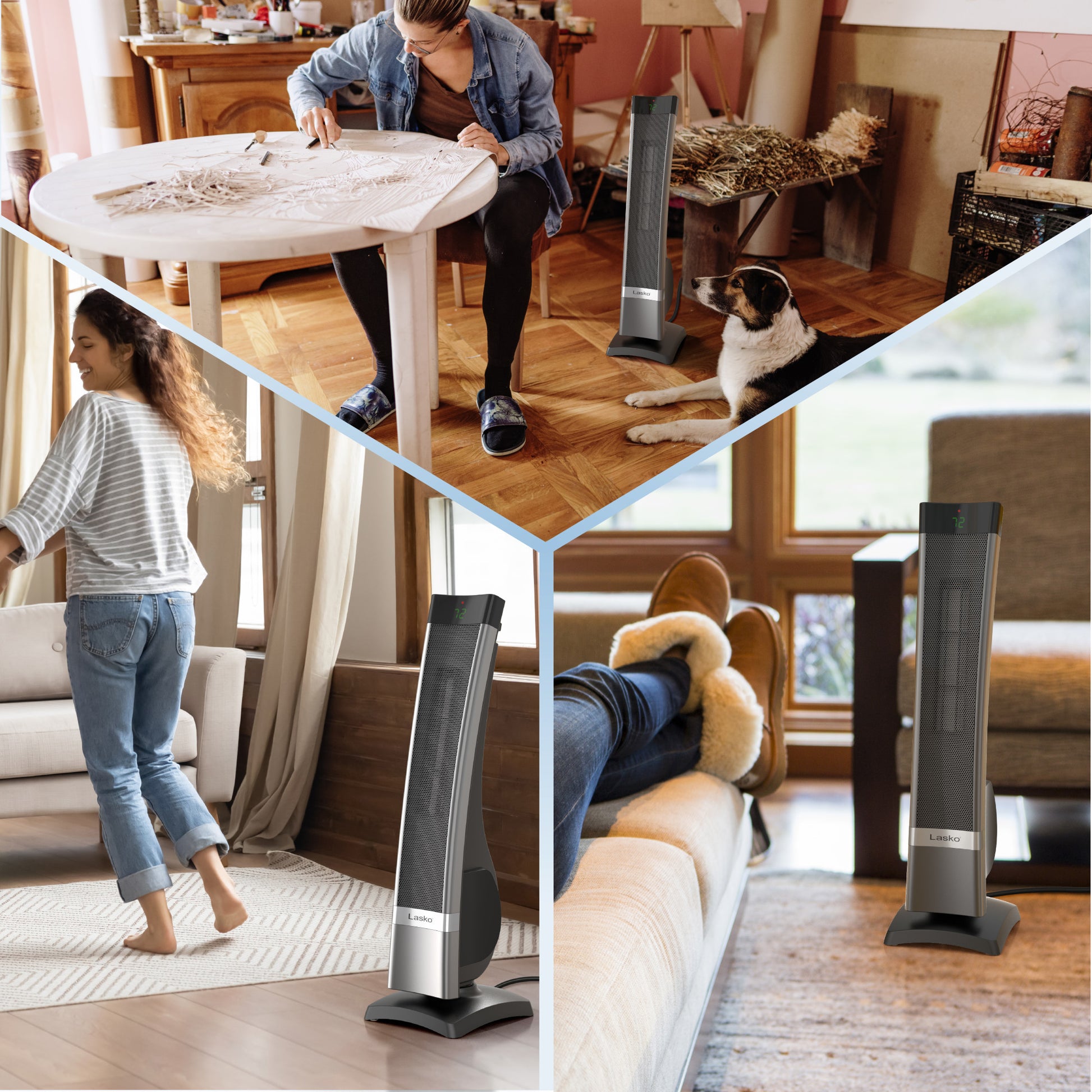 Lasko 1500W Ceramic Tower Space Heater with Timer and Remote Control, CT30711, Silver