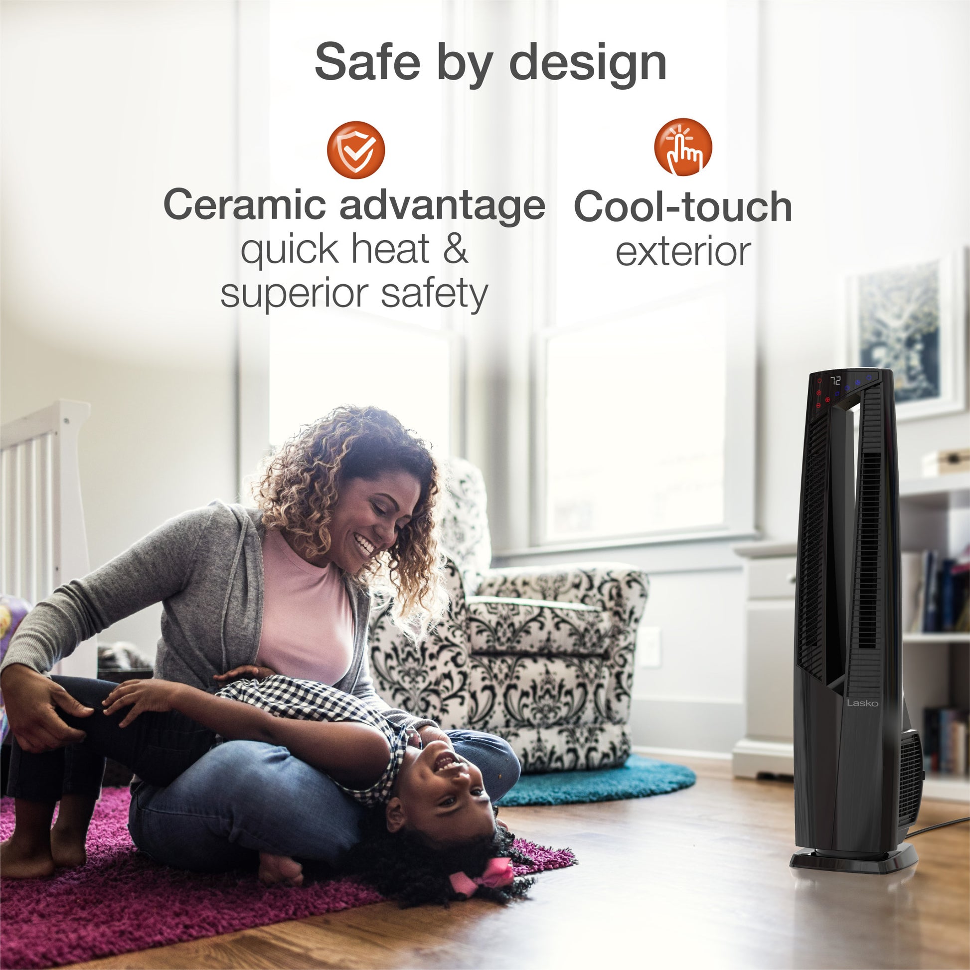 Lasko 1500W Electric Oscillating All Season Tower Fan and Space Heater with Remote, FHV801, Black