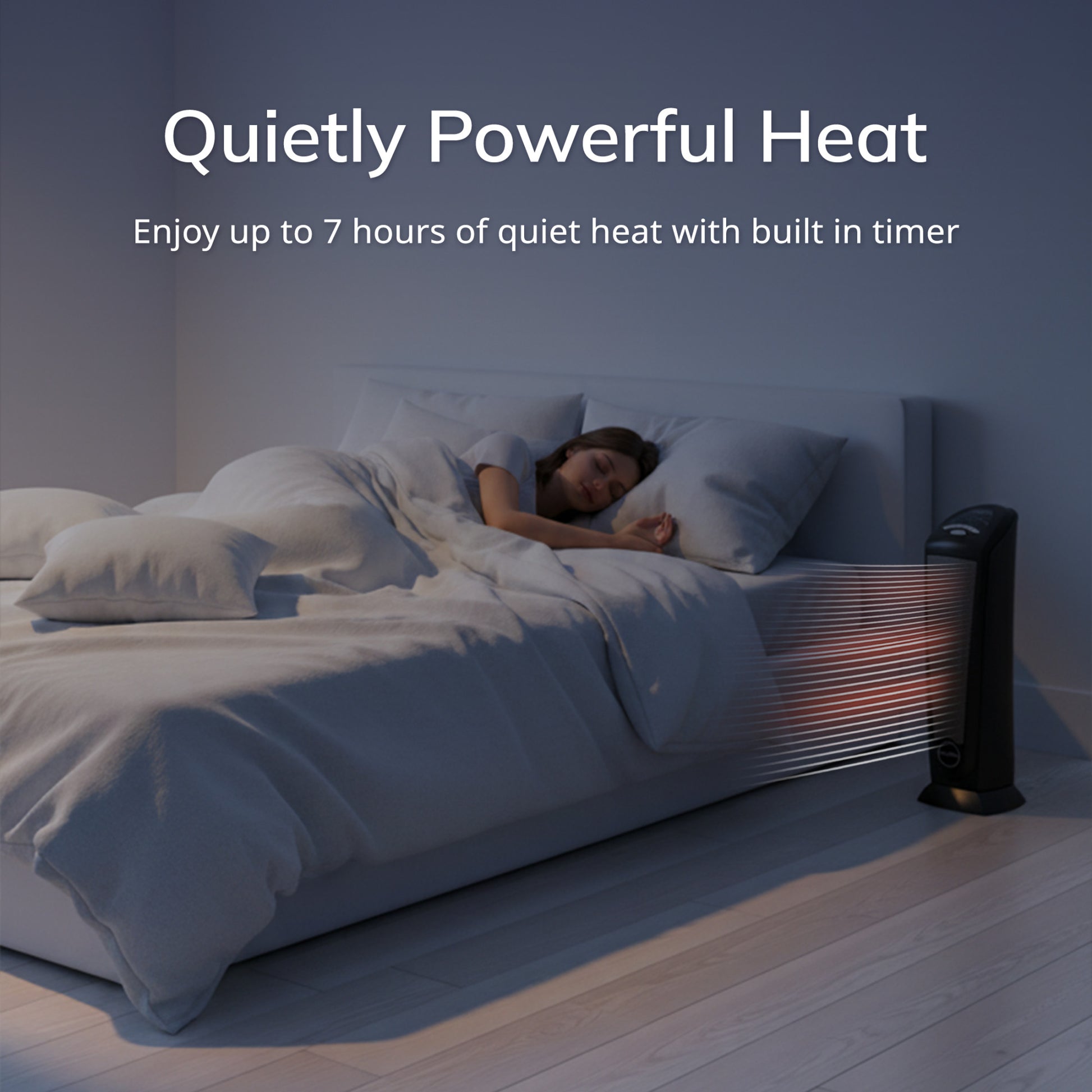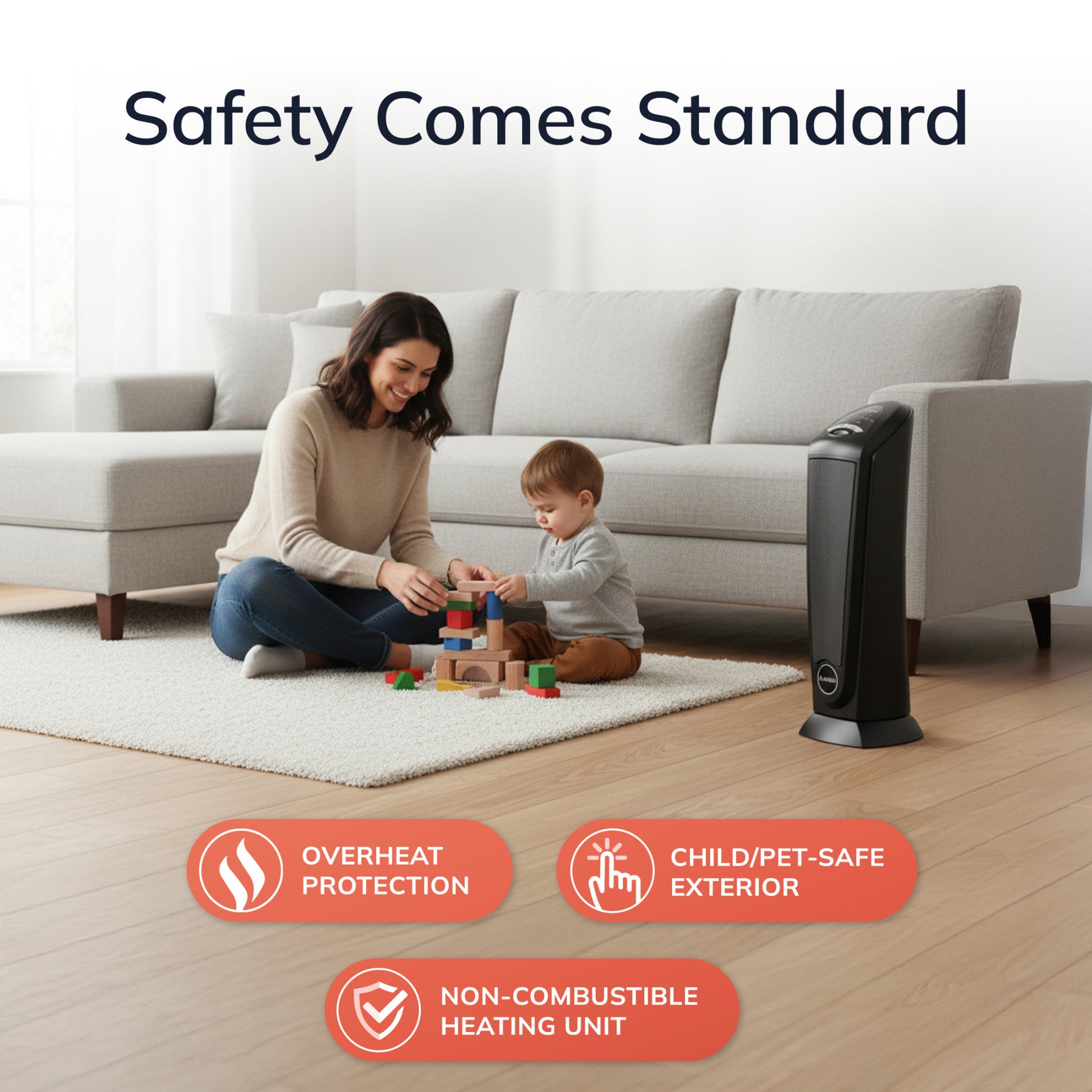 Safe ceramic comfort -self-regulating element, automatic overheat protection and exterior stays cool to the touch