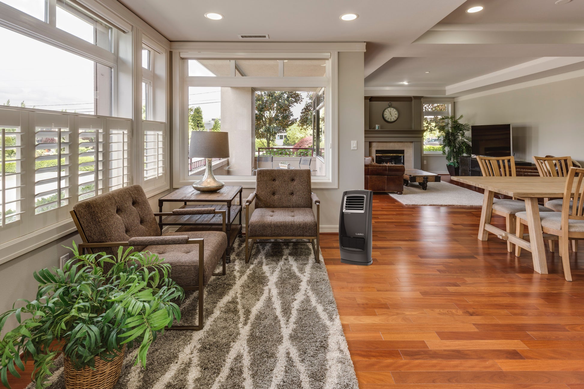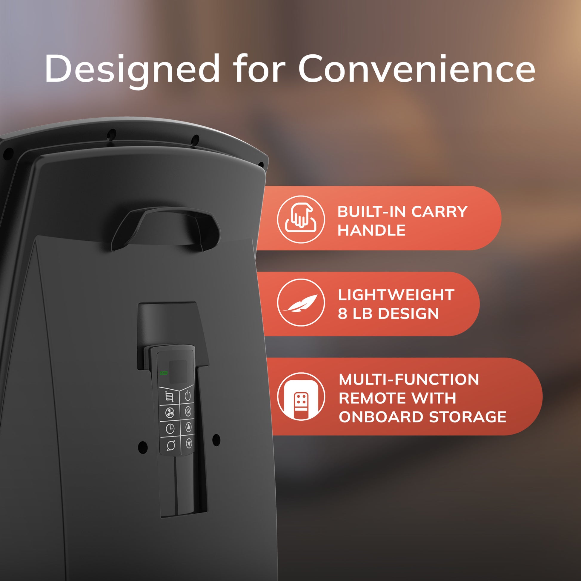This powerful room heater comes with built-in safety features, including overheat protection, tip-over safety switch, and cool-touch exterior housing. The easy-vacuum filter on the front of the unit makes regular heater maintenance a breeze. Plus, this portable heater is easy to move from place-to-place with a built-in carry handle and on-board remote storage. Comes fully assembled. 3-year limited warranty.