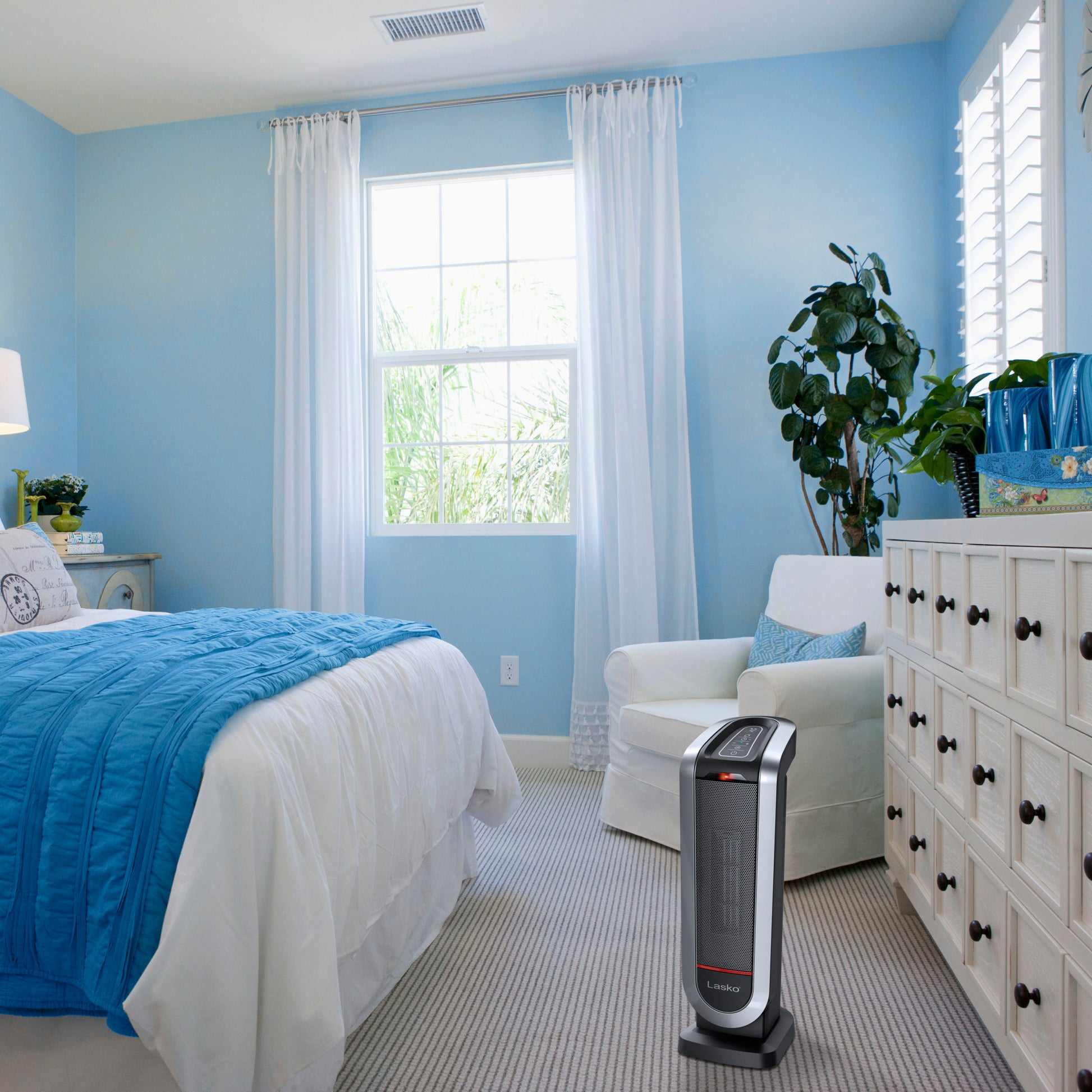 • Safety features include a tip-over switch, a safe ceramic element, automatic overheat protection and exterior stays cool to the touch