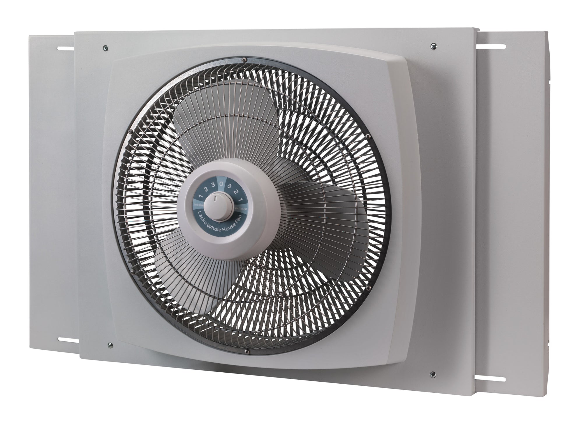 The Window Fan with E-Z DIal Ventilation by Lasko, is designed with slide panels on each side to custom fit a window that is 26.5" to 34.5" wide and 22" or higher. It has the performance power for whole-house cooling and electrically reversible motor to pull air in on cooler days, and exhaust hot air when needed. Lightweight and easy to install, this fan is equipped with 3 quiet speeds and EZ Dial controls. Rust resistant with powder-coated grills. Its exclusive Storm Guard® feature allows you to close the window behind the fan for weather protection and peace of mind. 1-year limited warranty.