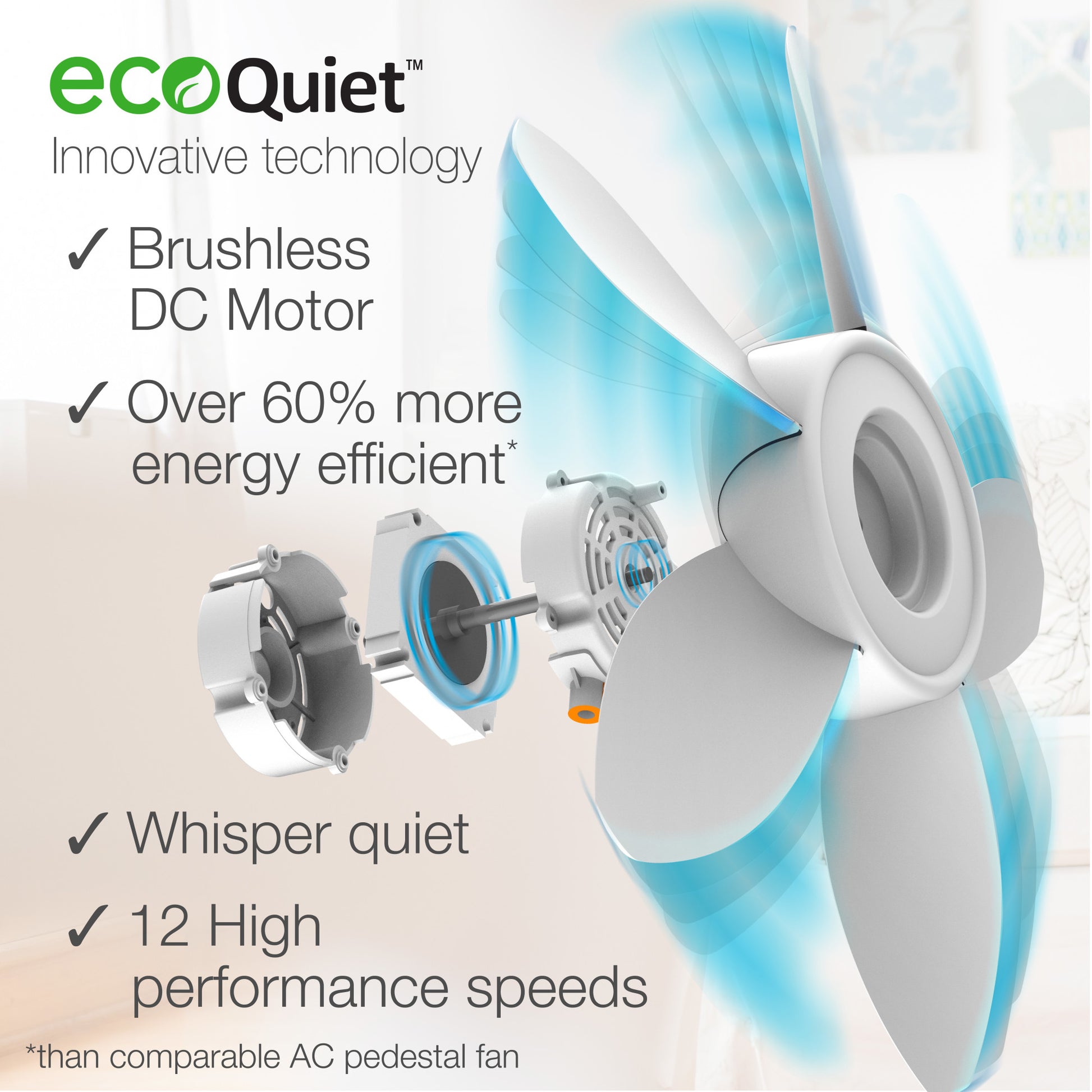 Lasko 18" 12-Speed EcoQuiet DC Motor Pedestal Fan with Remote Control, S18705, White