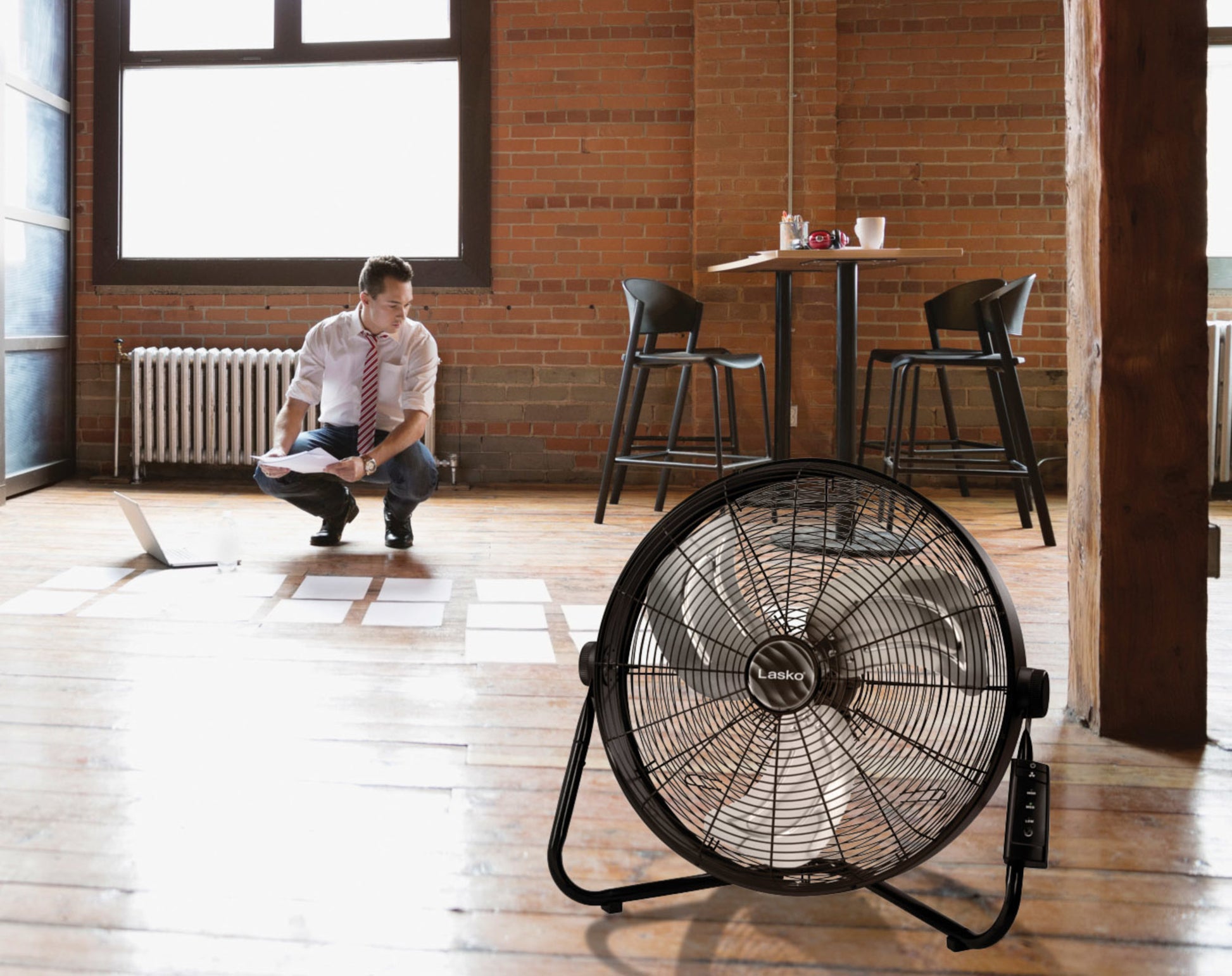 This commercial grade Max Performance 20" High Velocity Floor or Wall Mount Fan by Lasko's is constructed with 3 powerful speeds and metal fan blades to deliver maximum air movement. QuickMount® allows you to easily convert from floor to wall use. Has a front mounted control for added convenience and a durable tubular steel construction with comfortable carrying handle for portability. This fan is well-suited to garages, basements and other areas of your home. 1 year limited warranty. Condition: New