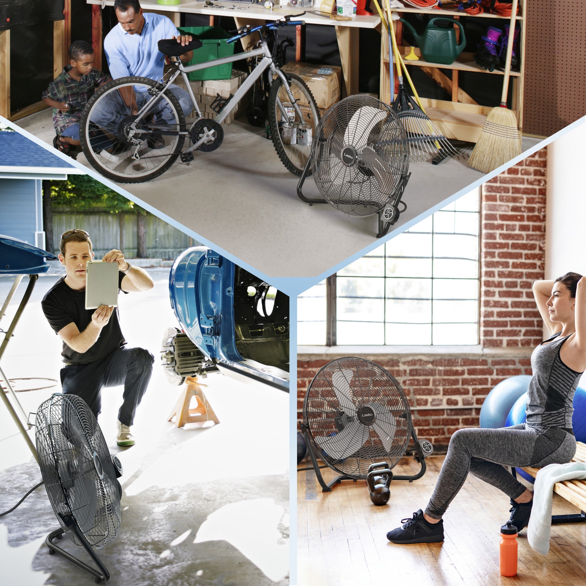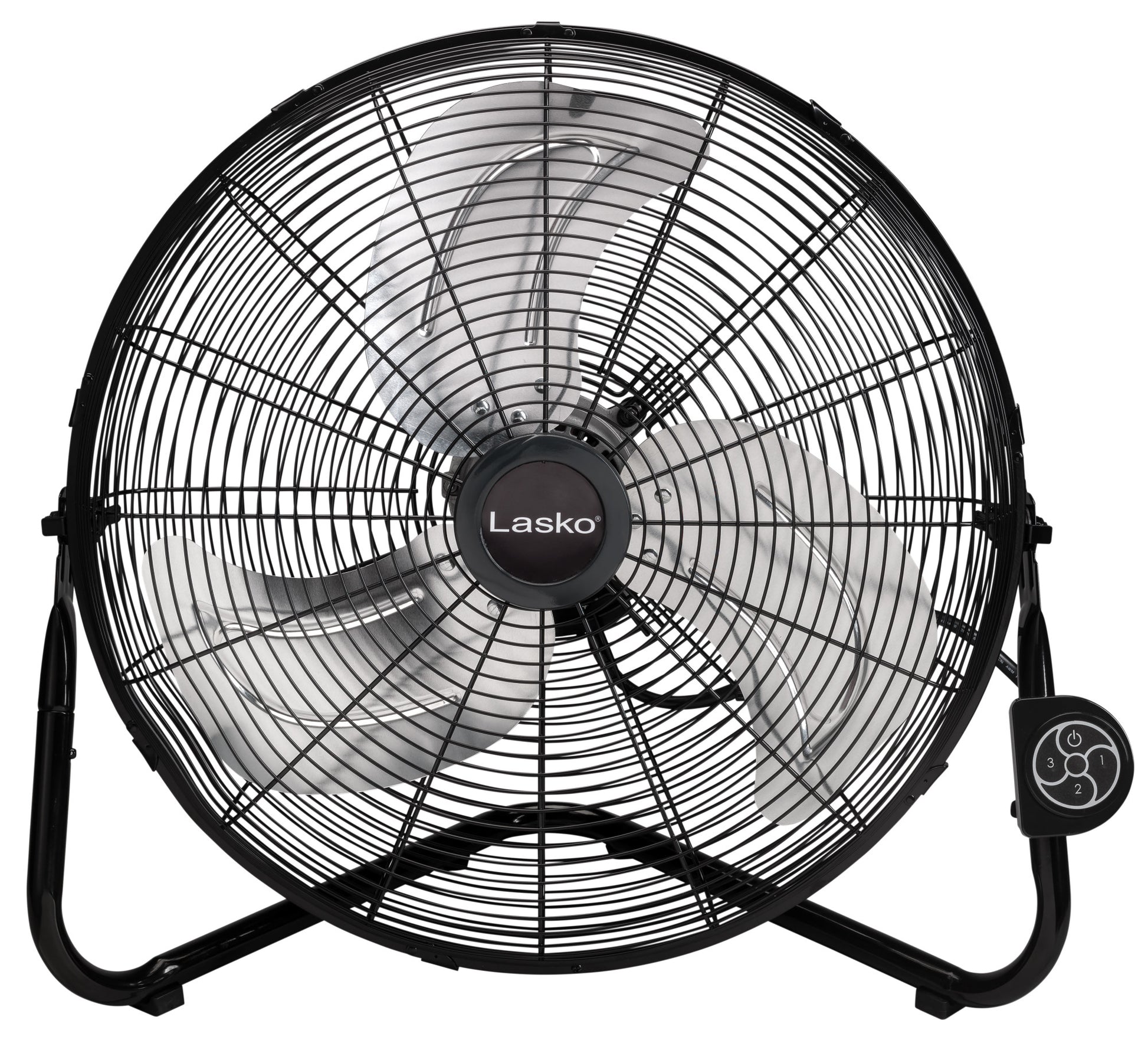 This commercial grade High Velocity Floor or Wall Mount Fan by Lasko is constructed with 3 powerful speeds and 20" metal fan blades to deliver maximum air movement. The QuickMount® system allows you to easily convert this fan from floor standing to wall-mount use. Pivot the adjustable fan head to direct air flow up, down, or wherever you need it. This portable fan features front mounted controls and a remote for added convenience. With durable tubular steel construction, this electric fan is built to stand up to tough use. Includes rubber pads to protect surfaces and built-in carrying handle for portability. This fan is well-suited to garages, basements and other areas of your home. Condition: New
