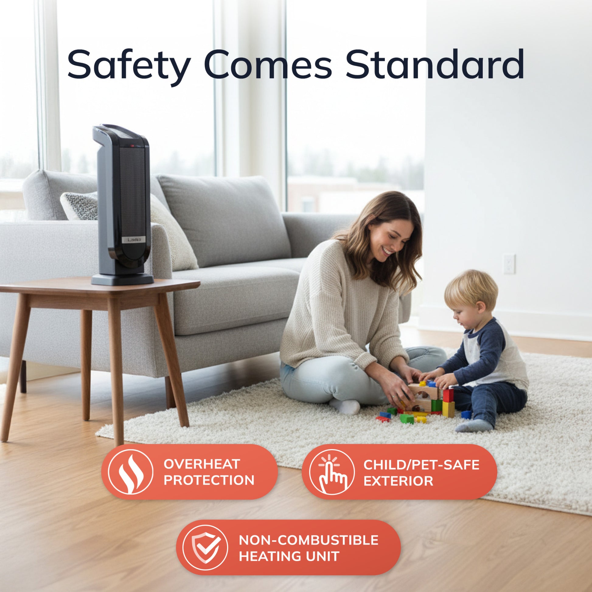 Built-in safety features including overheat protection and cool-touch exterior