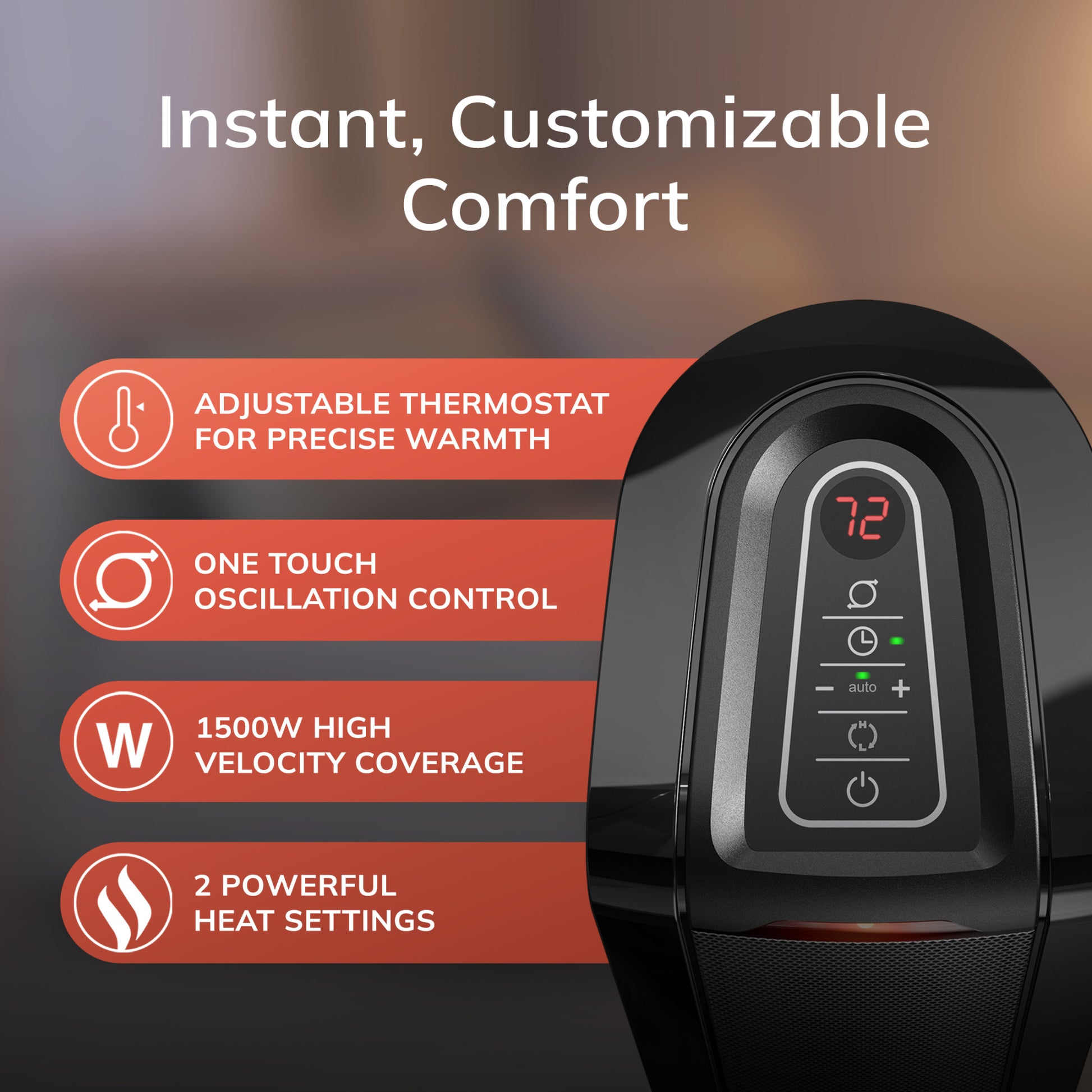 The simple controls and a multi-function remote make operating all heater functions very convenient. Additionally, the widespread oscillation evenly spreads warm air throughout the space. You’ll enjoy the warmth, knowing the built-in safety features include overheat protection and cool-touch exterior. Additionally, the built-in carry handle allows you to move this portable heater from room to room. Comes fully assembled. This electric heater is ETL listed and comes with a 6-foot power cord. For your safety, do not use space heaters with extension cords.