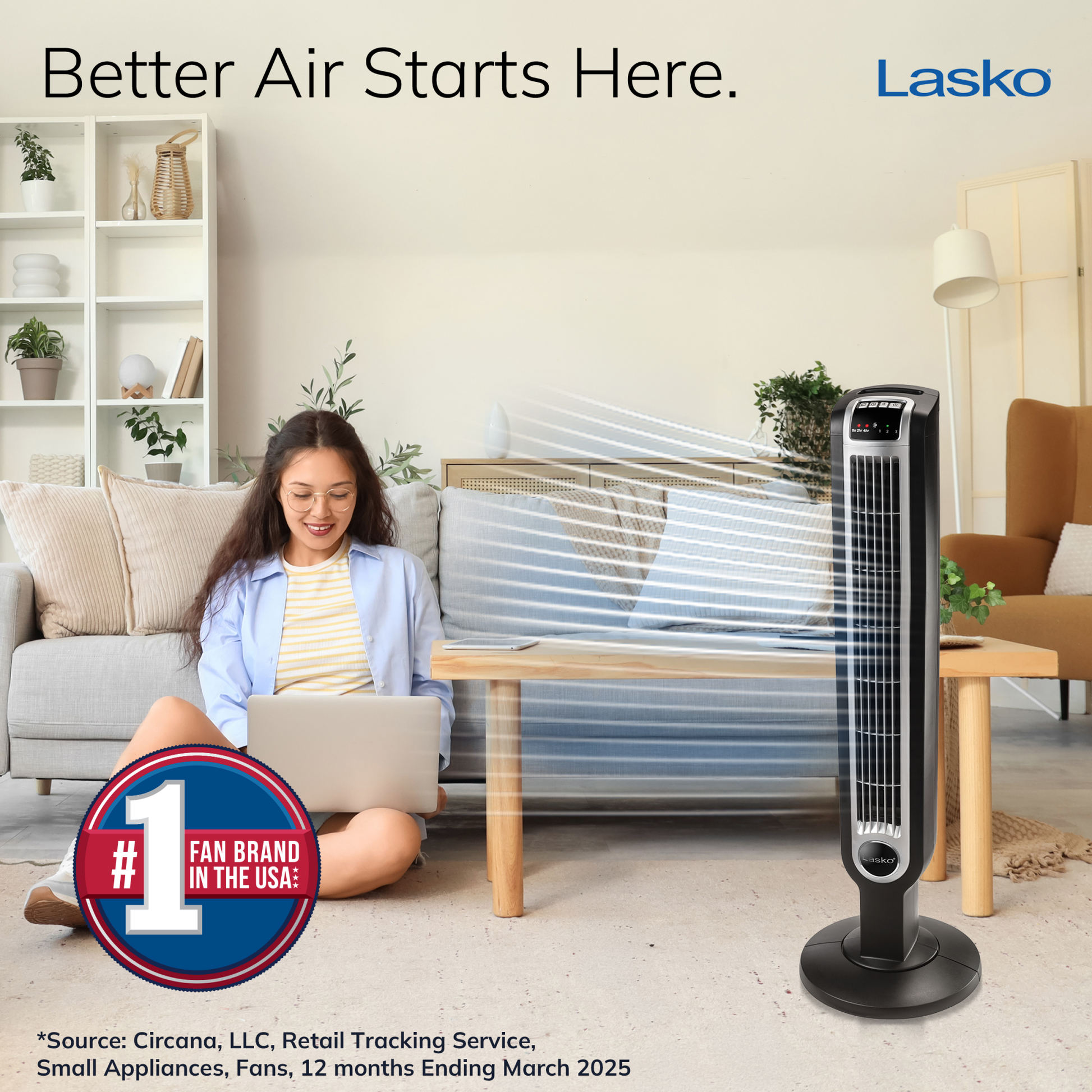 Lasko 36" Tower Fan with Nighttime Mode and Remote, T36205, Black