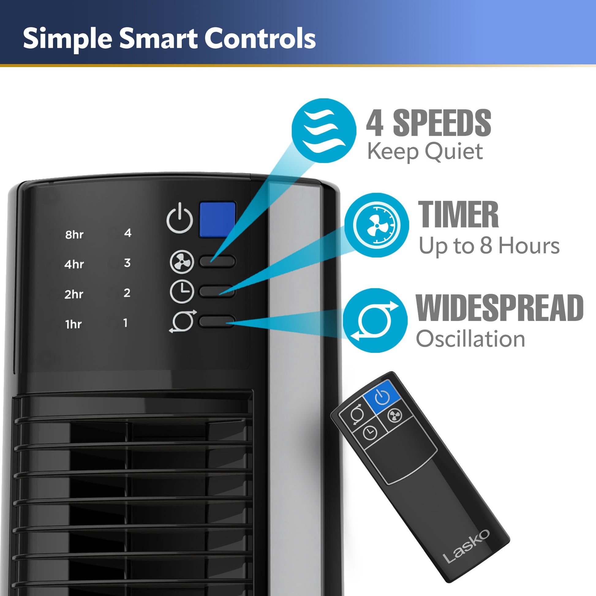 Offers 4 powerful fan speeds to suit your cooling needs