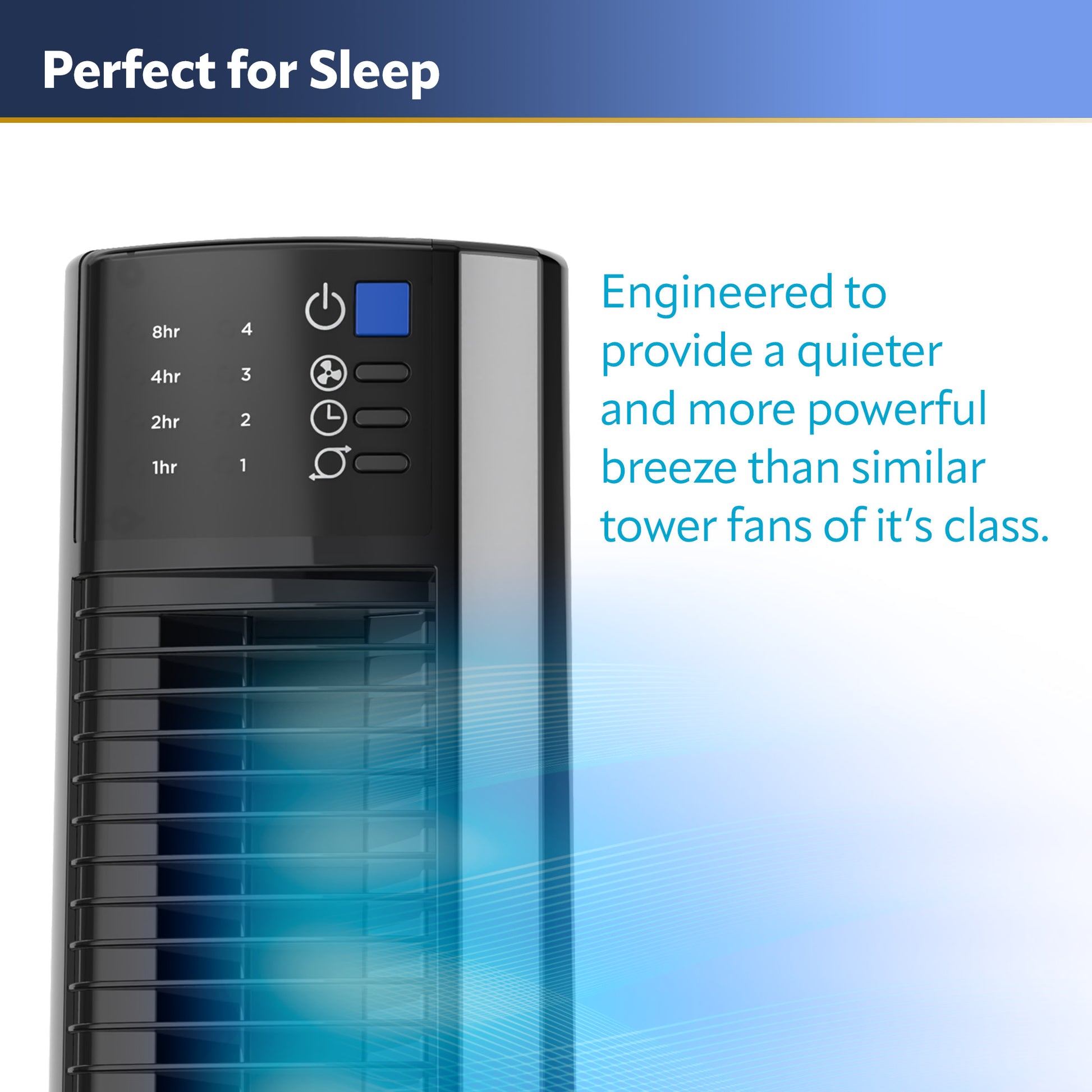 Provides over 25% more air velocity than traditional tower fans for enhanced cooling performance