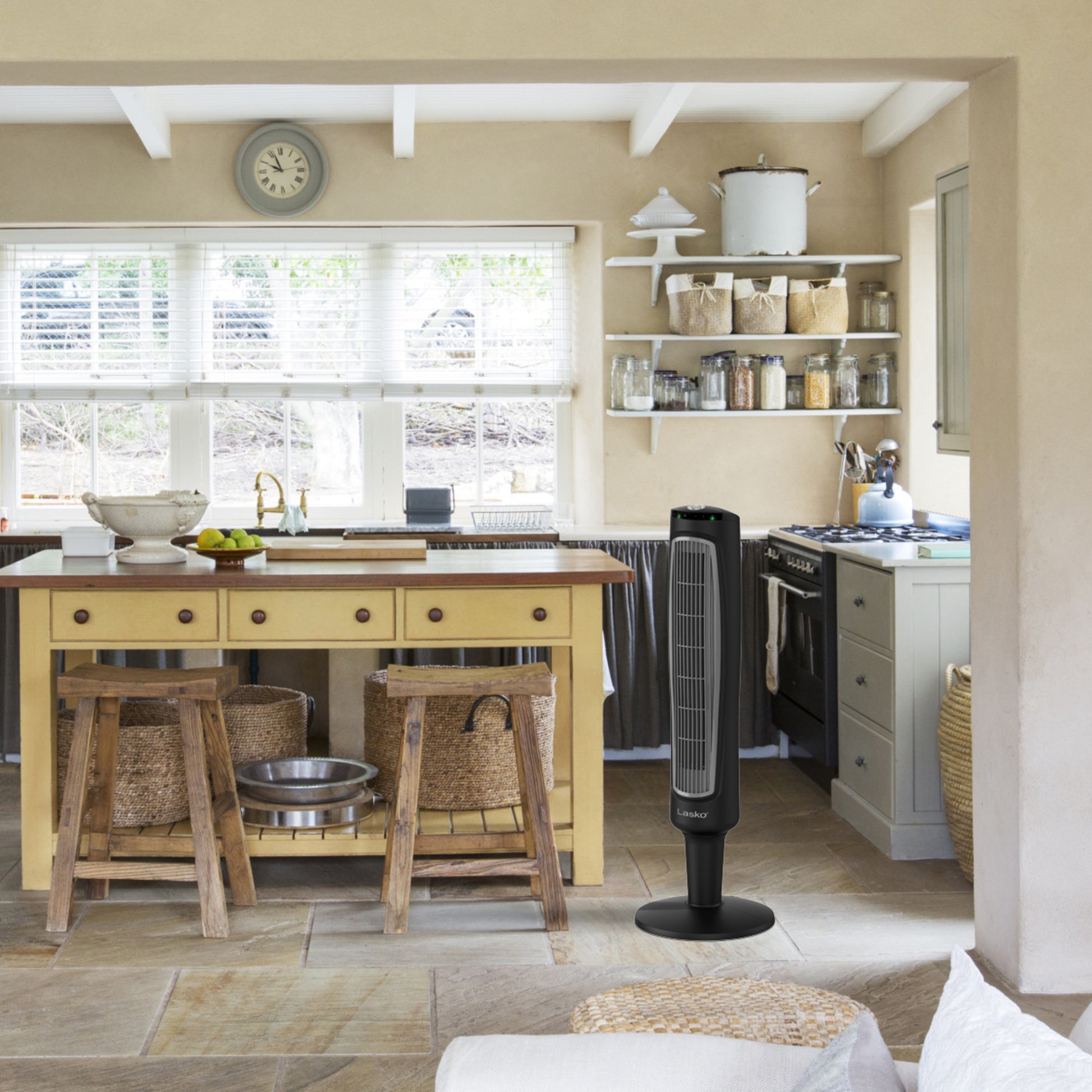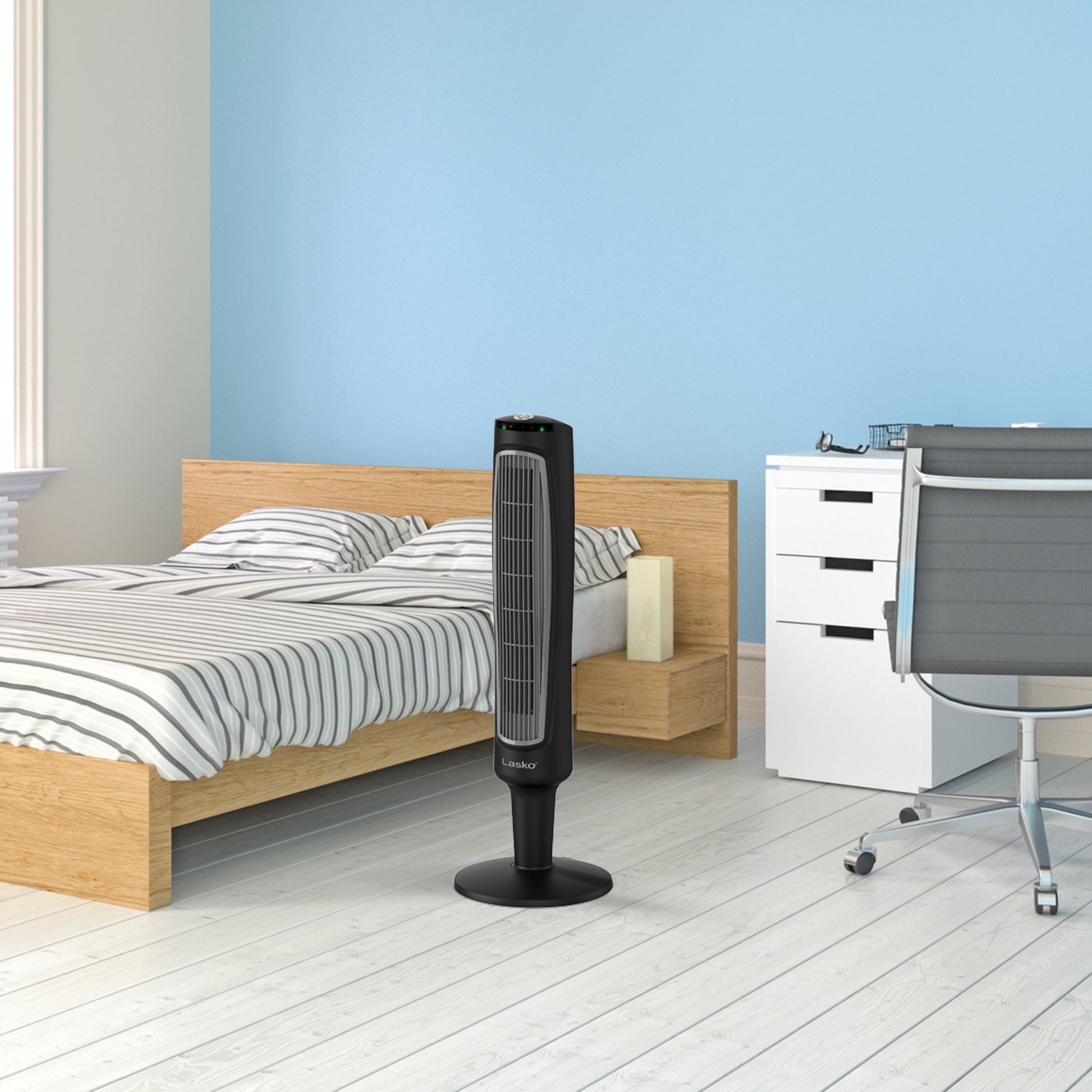 Lasko 38" Oscillating 3- Speed Wind Tower Fan with Remote, T38305, Black/Silver