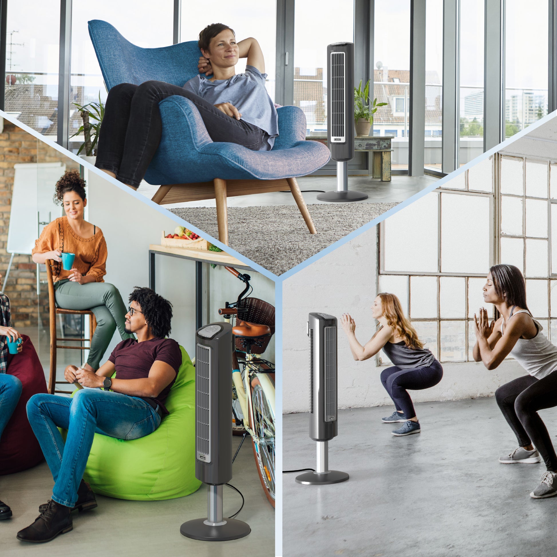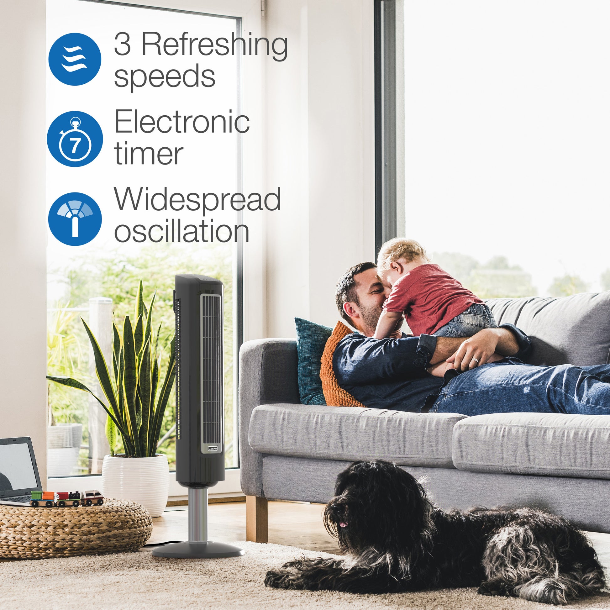 Lasko 38" Wind Tower 3-Speed Oscillating Tower Fan with Remote and Timer, 2519, Gray