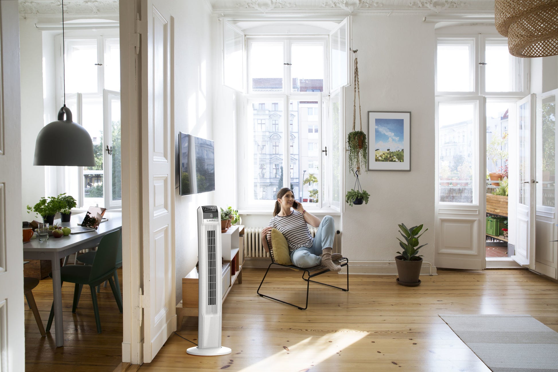 EcoQuiet™ TECHNOLOGY: With a DC motor that's over 60% more energy efficient than traditional fans, this whisper-quiet tower fan is perfect for bedrooms and living spaces. Enjoy powerful airflow, ultimate tranquility, and energy savings all in one!