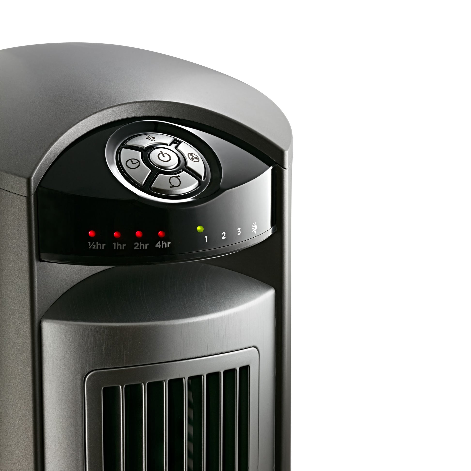 Nighttime setting automatically reduces fan speed and dims control lights for a peaceful slumber