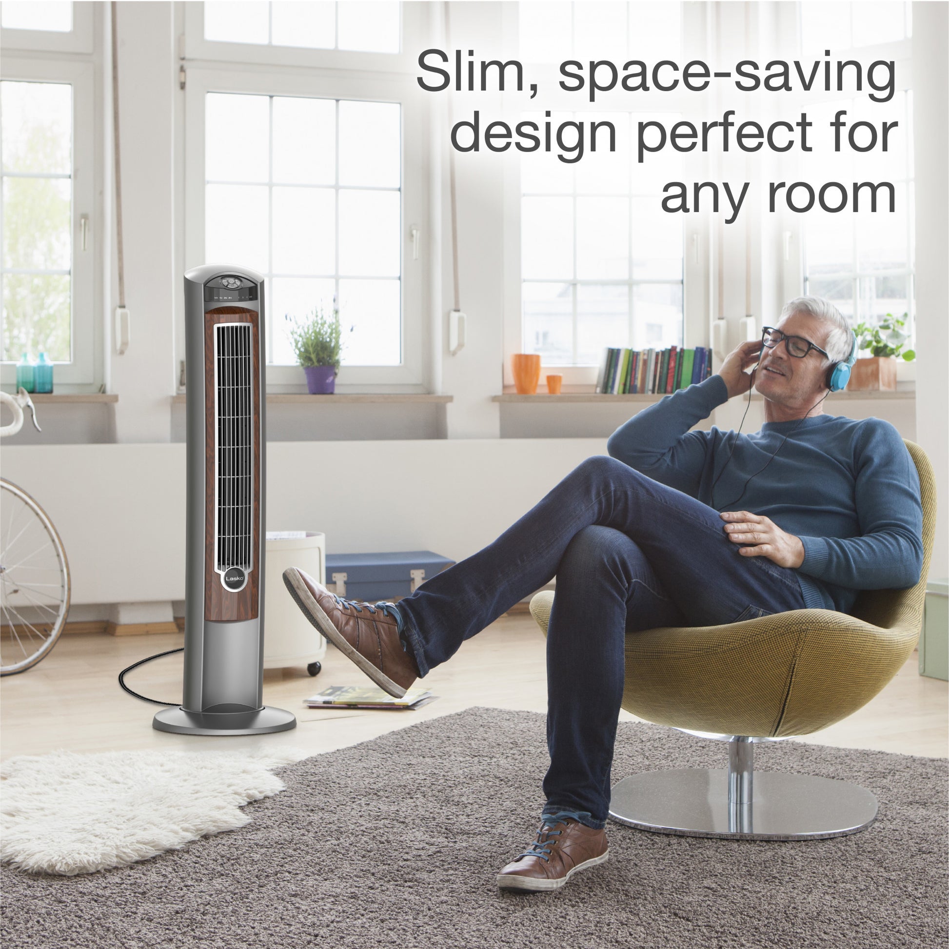 Lasko 42" Wind Curve Tower Fan with Ionizer and Remote, 2554, Gray/Woodgrain