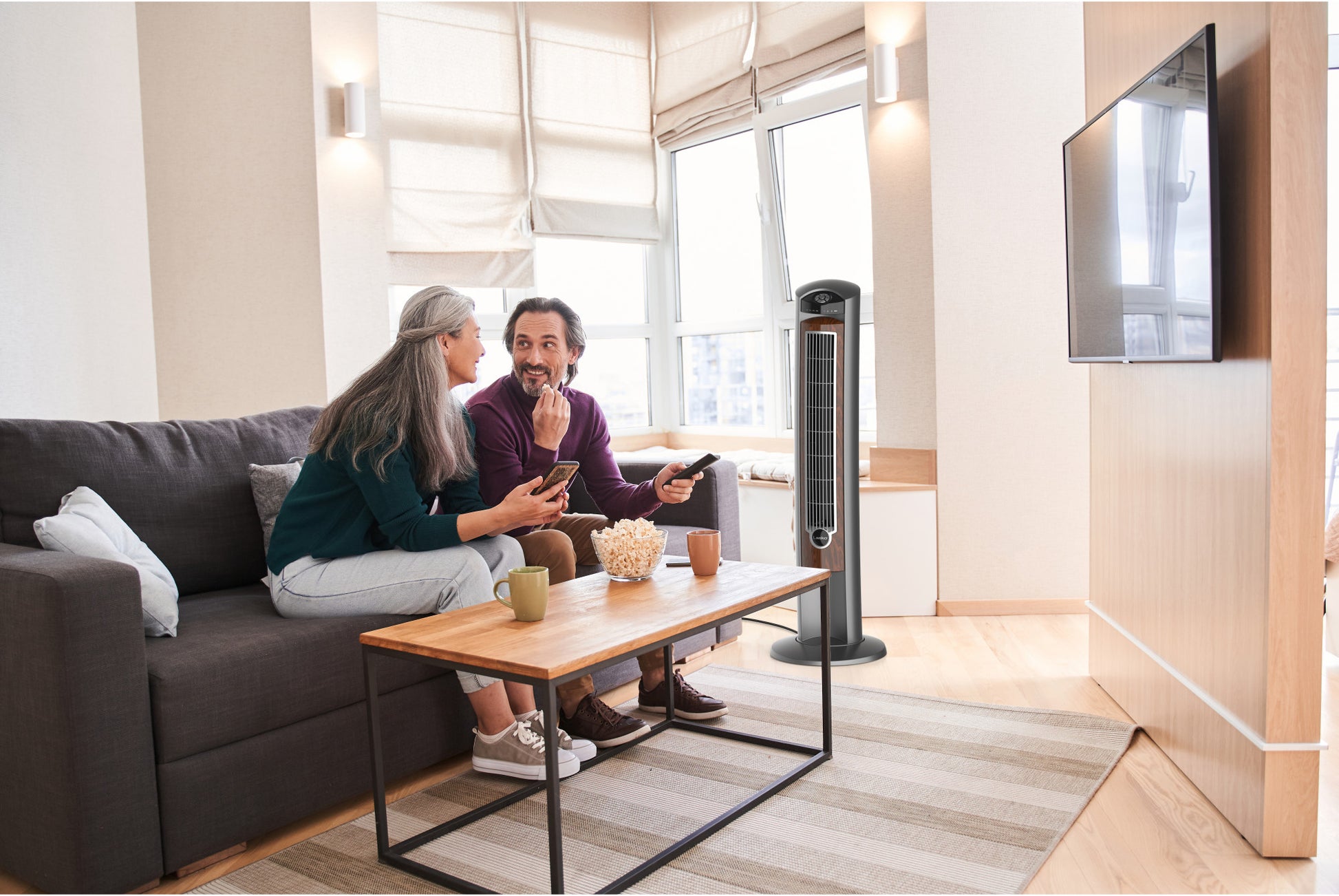 This 42" Wind Curve® Fan comes with a fresh air ionizer option that creates a fresh air feeling like the great outdoors. With 3 quiet speeds, high-reaching tower design, and widespread oscillation, this fan provides maximum air delivery. The convenient auto-off time can be set for up to 7.5 hours and then will turn off automatically. Simple electronic controls and multi-function remote control make operating this electric fan simple and convenient. Tastefully designed with distinctive wood-grain accents, this space-saving tower fan will quietly circulate cooling air throughout any room or office. Features built-in carry handle for easy portability. Includes Lasko's trusted, fused safety plug for peace of mind. Simple assembly required. Condition: New