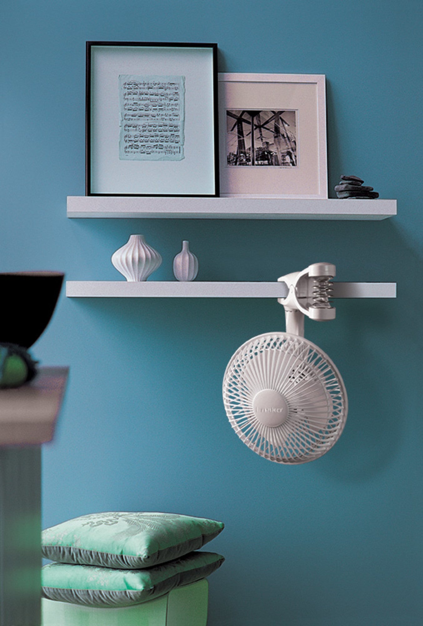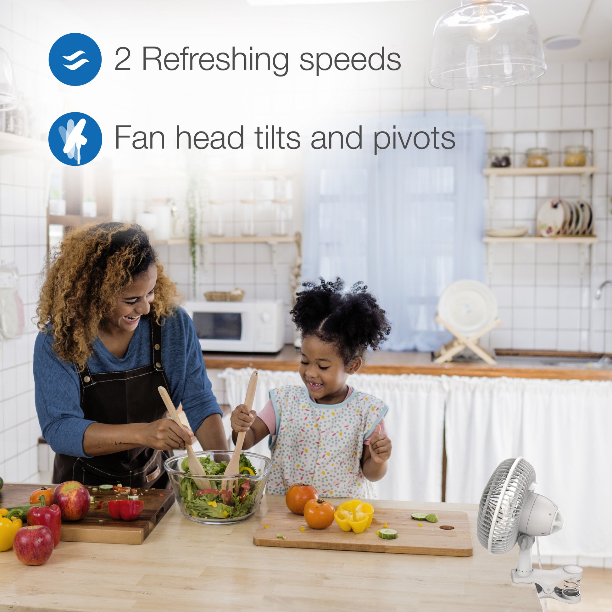 Put some cool air on the shelf with this Personal Clip Fan by Lasko. This 6" fan has the option to clip-on a shelf at your desk or other personal area. Space saving design and compact size makes it suitable for quarters that are tight or cramped. Has easy-to-use controls, 2 quiet speeds to operate a setting to accommodate your environment. Includes an adjustable tilt and 360° pivot to direct air precisely where needed most. The spring-loaded clip holds tightly without marking surfaces. Features a safety fuse technology for peace of mind. Simple "no tool," assembly is easy to put together. 1 year limited warranty.