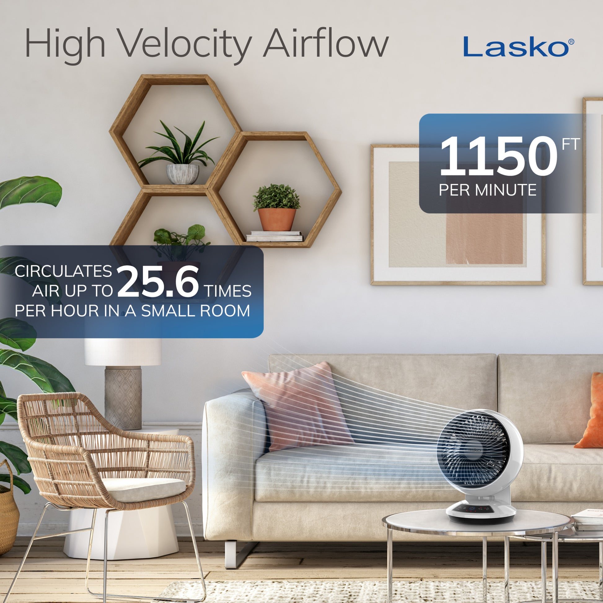 Circulates up to 25.6 times per hour in a small room and 13.1 times per hour in medium sized rooms