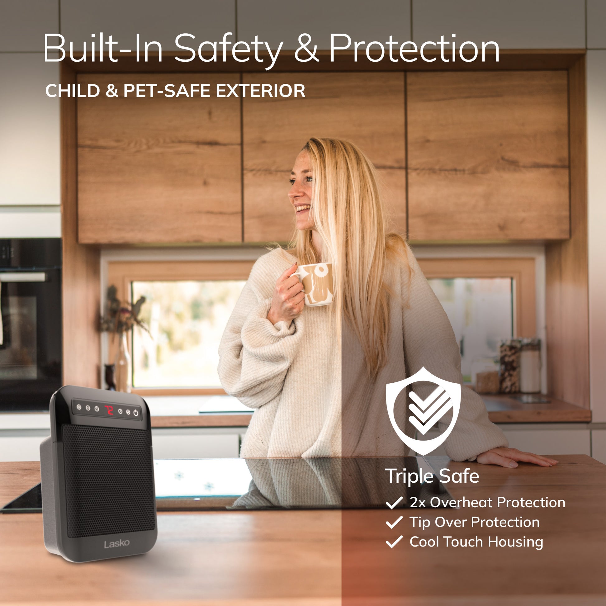 Triple Safe Protection: Safety is a top priority at Lasko. The MyHeat Max features a tip-over switch, 2 times overheat protection, a safe ceramic element, cool touch housing and auto shut-off for peace of mind