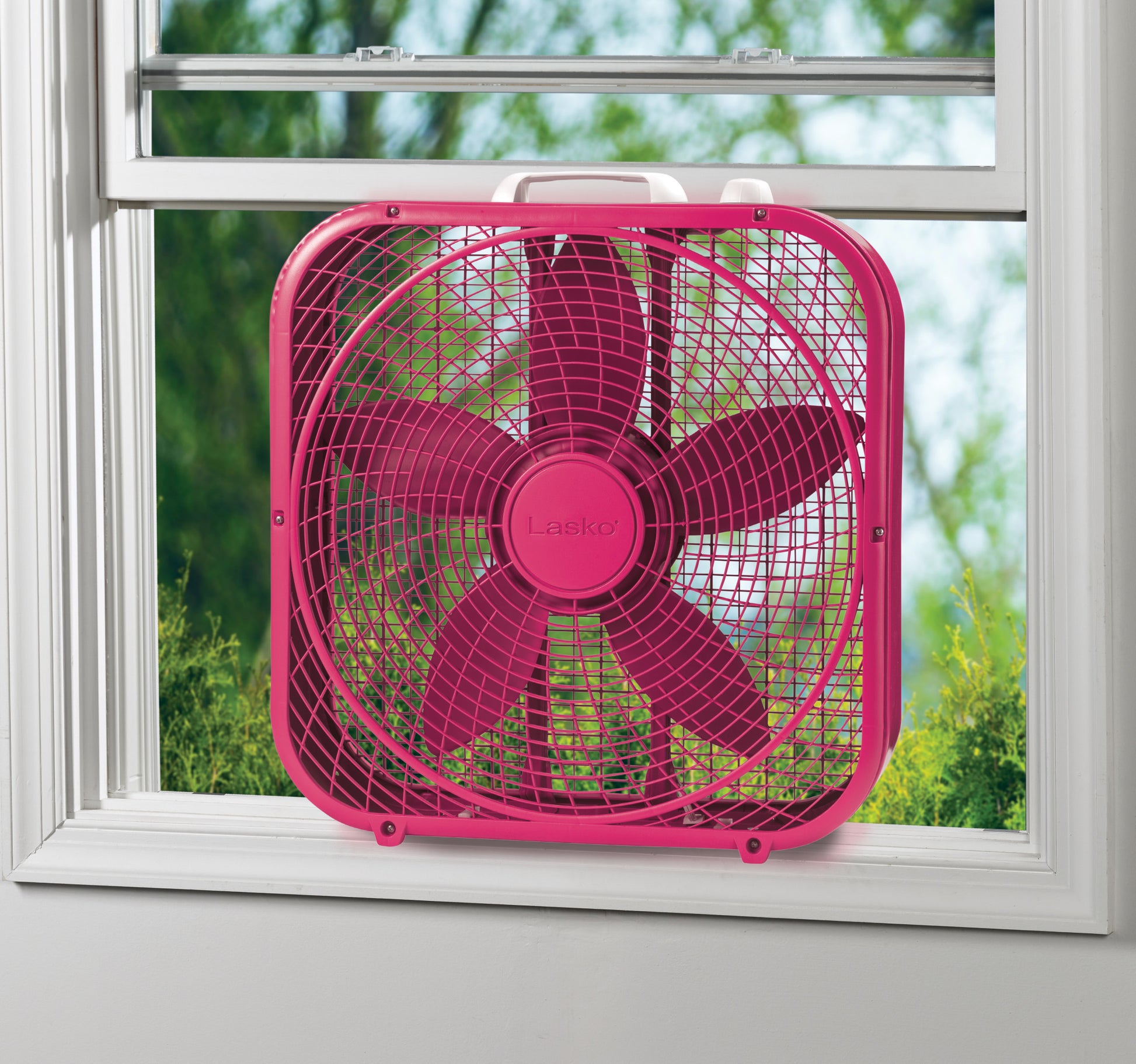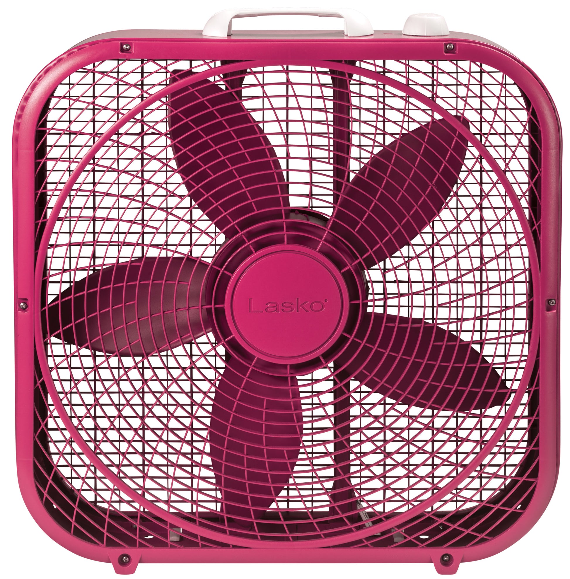 Keep your space cool and comfortable with the Lasko Cool Colors 20" box fan. For less than two pennies per hour, the fan utilizes three quiet speeds to help keep your home or apartment at a comfortable temperature. The Lasko Cool Colors Box Fan, Fuchsia Supreme is both functional and aesthetically pleasing. The fan can be operated using the top-mounted controls for convenient operation. The Lasko fan measures 20" in width and works best in small to medium rooms. Condition: New