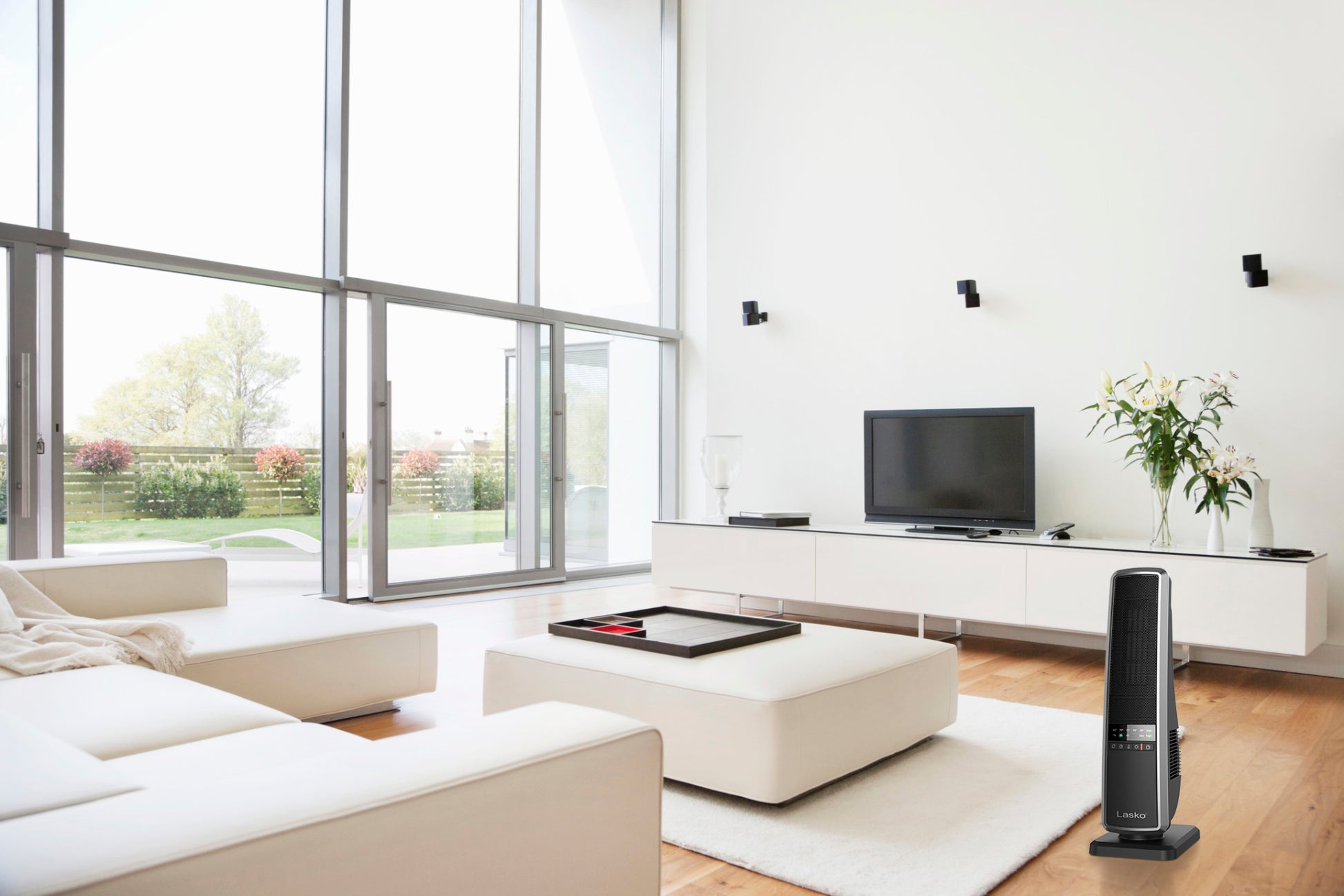 Quickly spread the heat with an affordable Ceramic Tower Heater by Lasko is easy-to-use and ideal for any room or home office. This heater uses patented blower Technology to circulate 1500 watts of warmth. Equipped with an adjustable thermostat, 2 quiet heat settings, 7-hour auto-off timer and multi-function remote control for added convenience. It's widespread oscillation evenly disperses heat and the automatic overheat protection provides safety and peace of mind. Includes an easy-grip carry handle and a convenient onboard remote control storage area. 3 year limited warranty.