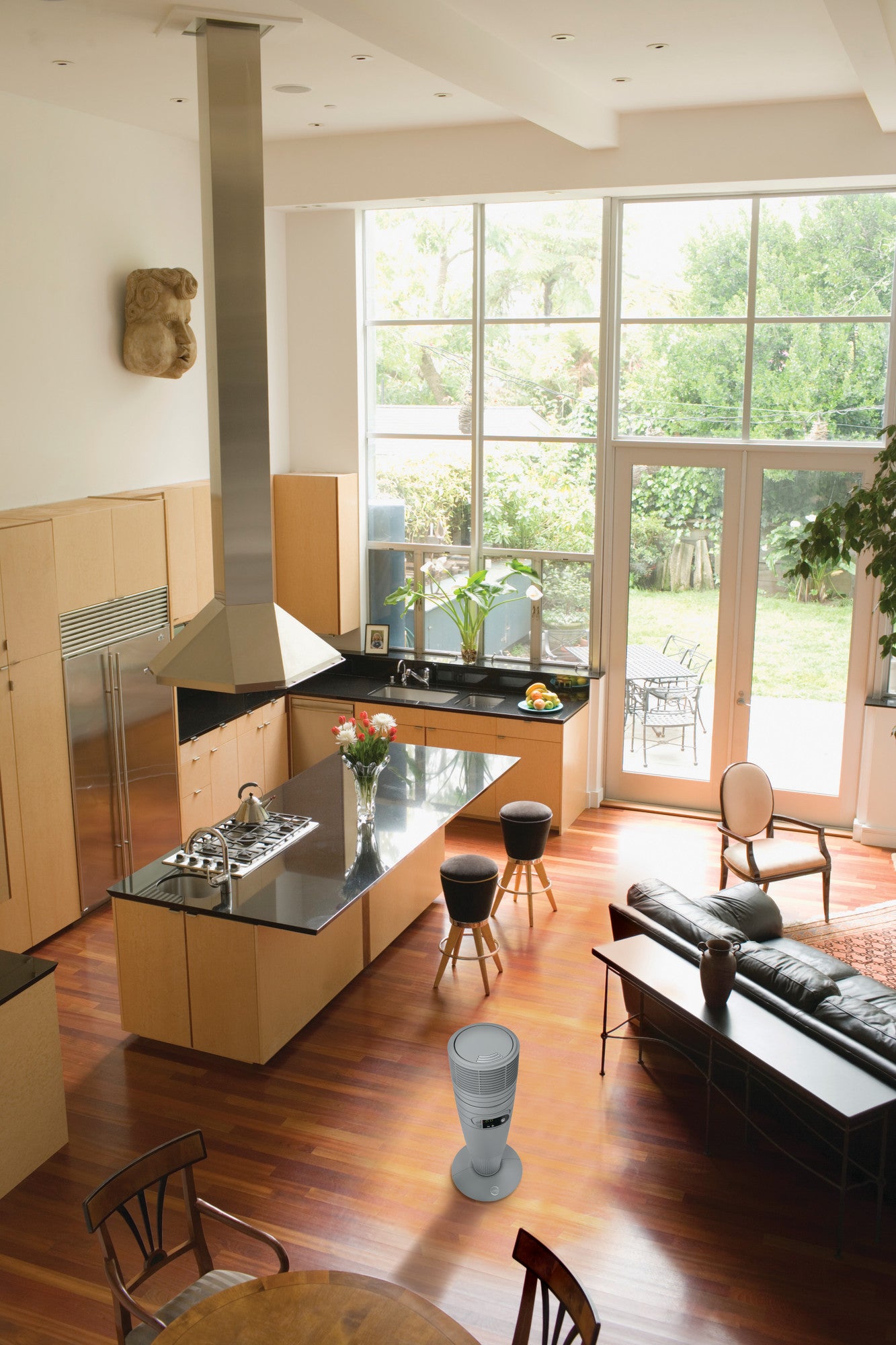 With enough warmth to go around, the Ceramic Full Circle Ceramic Heater by Lasko, provides 1500 watts of extended comfort with patented blower Technology for enhanced heat penetration. The 25" height and 3 heat sweep settings, 90°, 170° and full 360°, project heat around your room. Includes a digital thermostat, and 2 quiet heat settings. Safety is built-in with its self-regulating element, automatic overheat protection and an exterior that stays cool to the touch. Plus, an easy-to-clean filter keeps your unit running efficiently. There is an on-board remote storage and base assembly is simple. 3 year limited warranty. For indoor use only. Condition: New