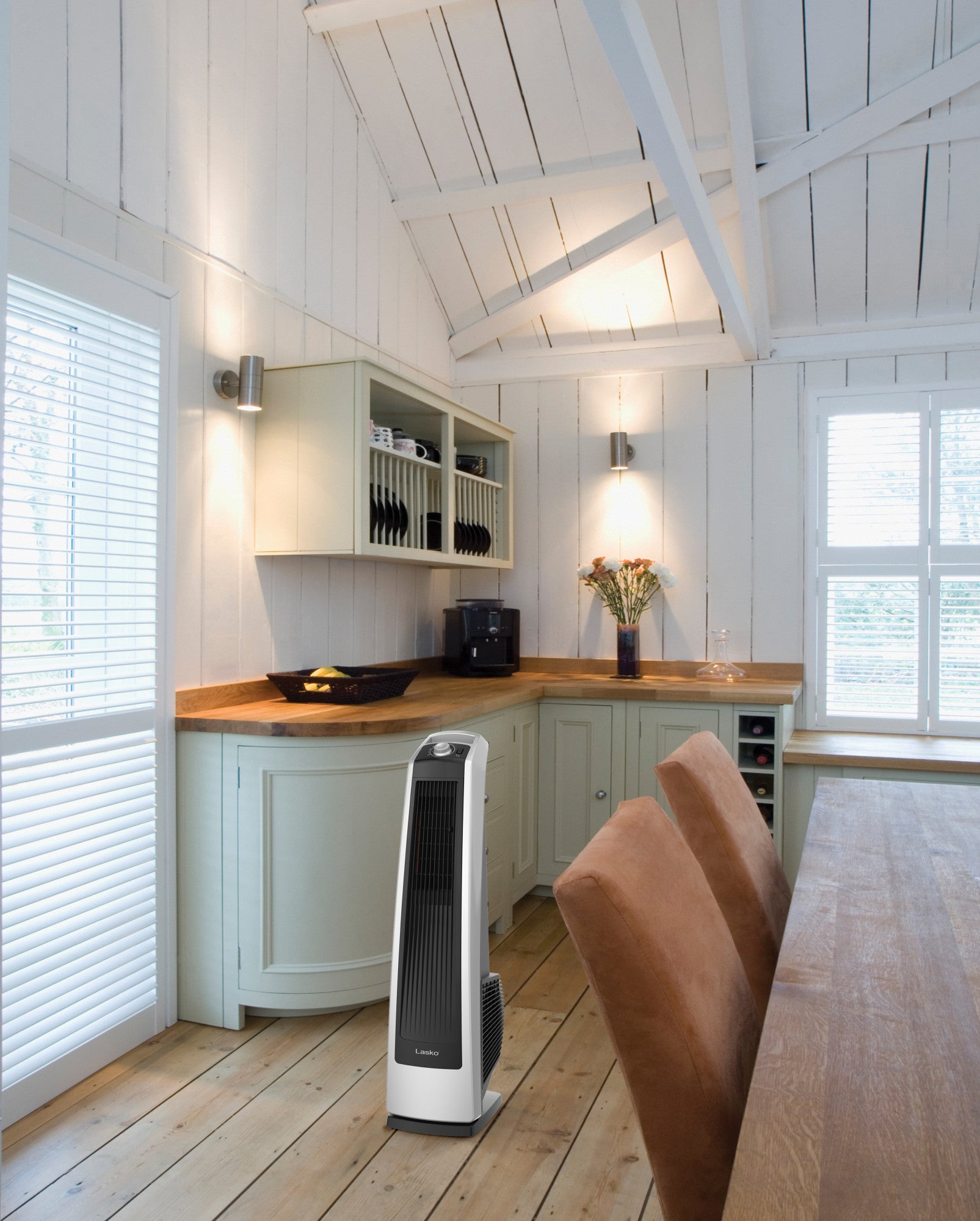 This powerful high-velocity fan from Lasko has a space-saving profile and sleek design. Features simple, top-mounted, manual controls with 3 powerhouse speeds for maximum performance. Select widespread oscillation for broad room coverage, and directional louver controls for precision air delivery to customize airflow in your space. The easy-grip handle makes it easy to move this fan from room to room and bring cooling airflow where it is needed most. With durable construction and powerful air velocity, this fan is ideal for large busy areas, like garages and workshops. Condition: New