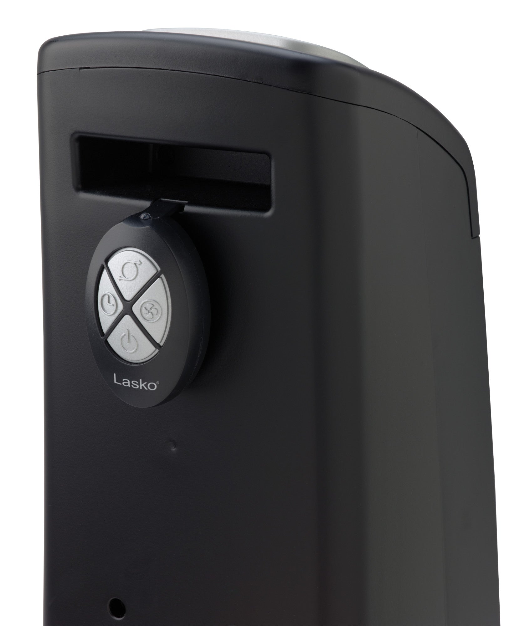 Lasko Oscillating High Velocity Tower Fan with Remote, U35102, Black/Silver
