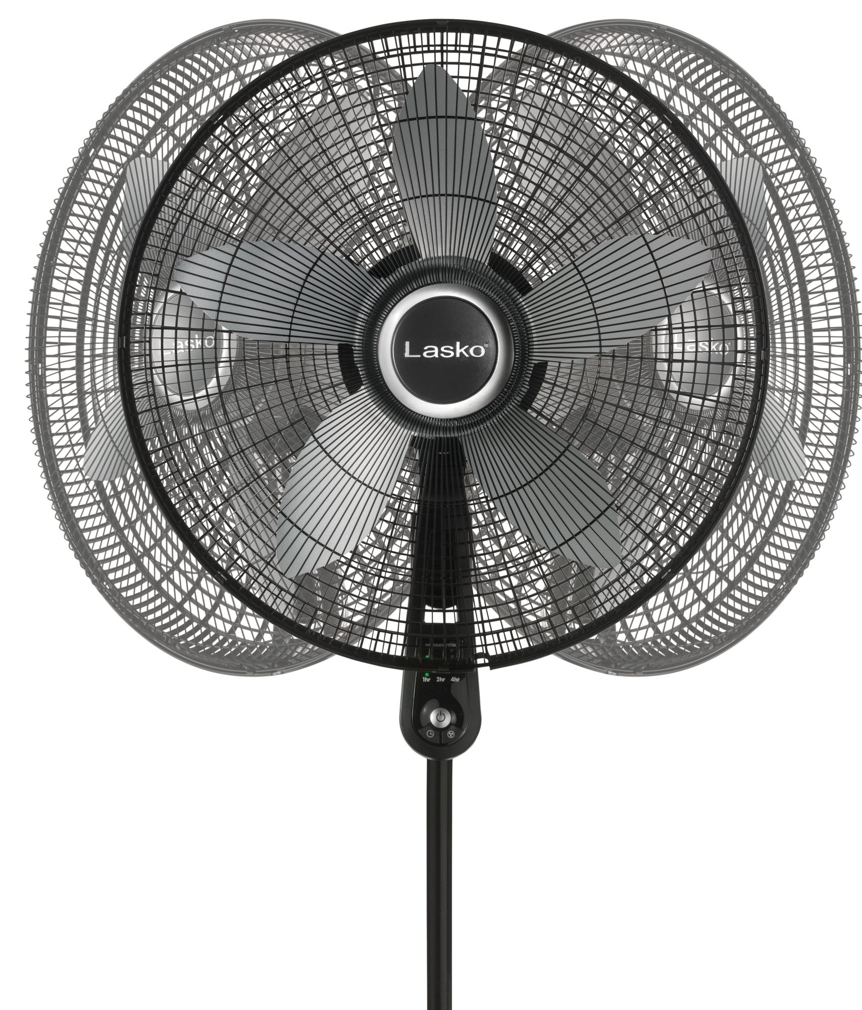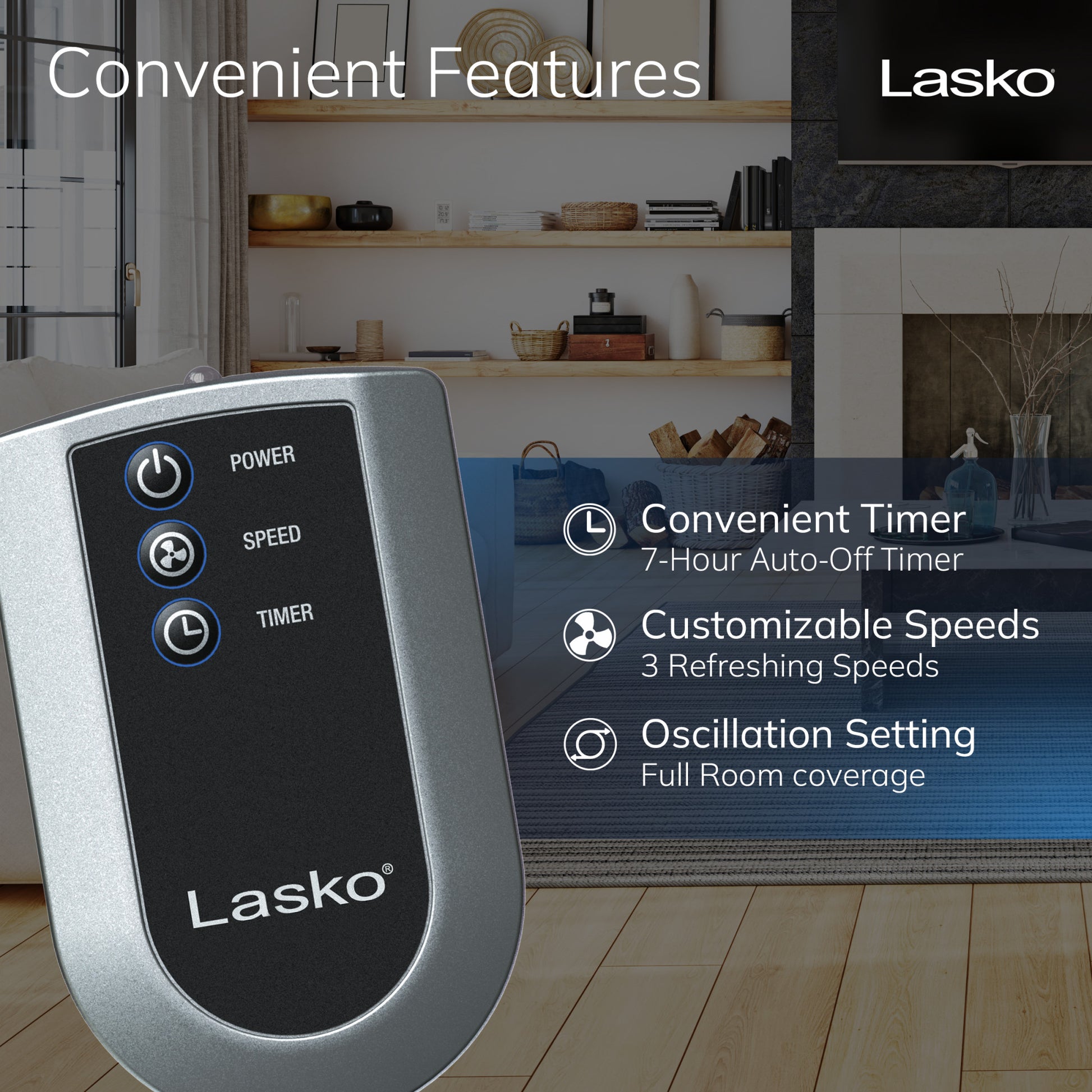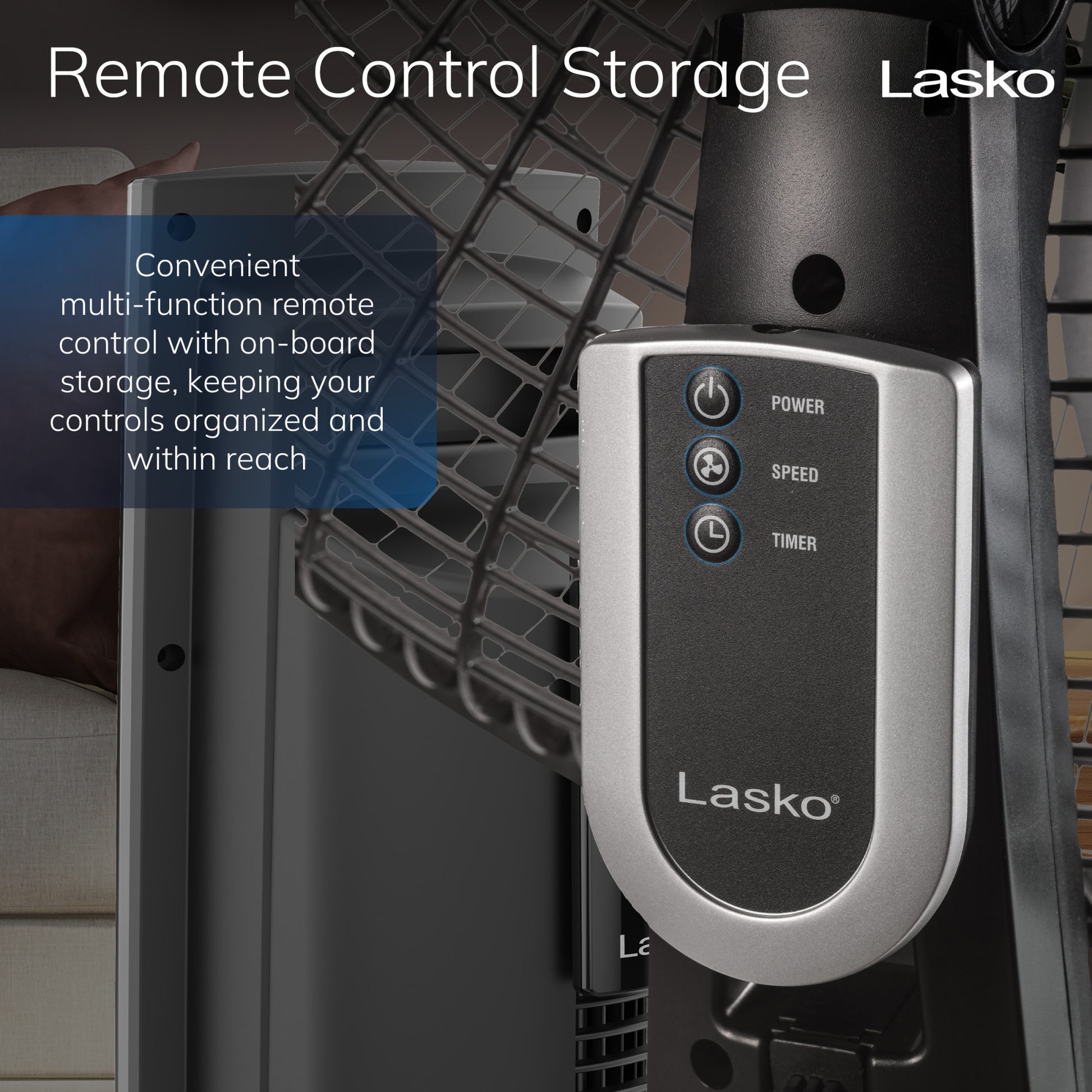 The Lasko 20" Oscillating Remote Control Pedestal Fan is a a great choice for providing cooling airflow for large rooms and spaces. Features an electronic seven-hour timer, convenient multi-function remote, 4-speed comfort control, tilt-back fan headt, and optional oscillation for customized airflow. This attractive and effective stand fan is ideal for full-room circulation in your bedroom, den, yoga studio or anywhere else you need to create a cooling effect. Equipped with Blue Plug safety fuse technology, making this fan a safe and an energy-efficient option. Simple no tools assembly required. 1-year limited warranty.