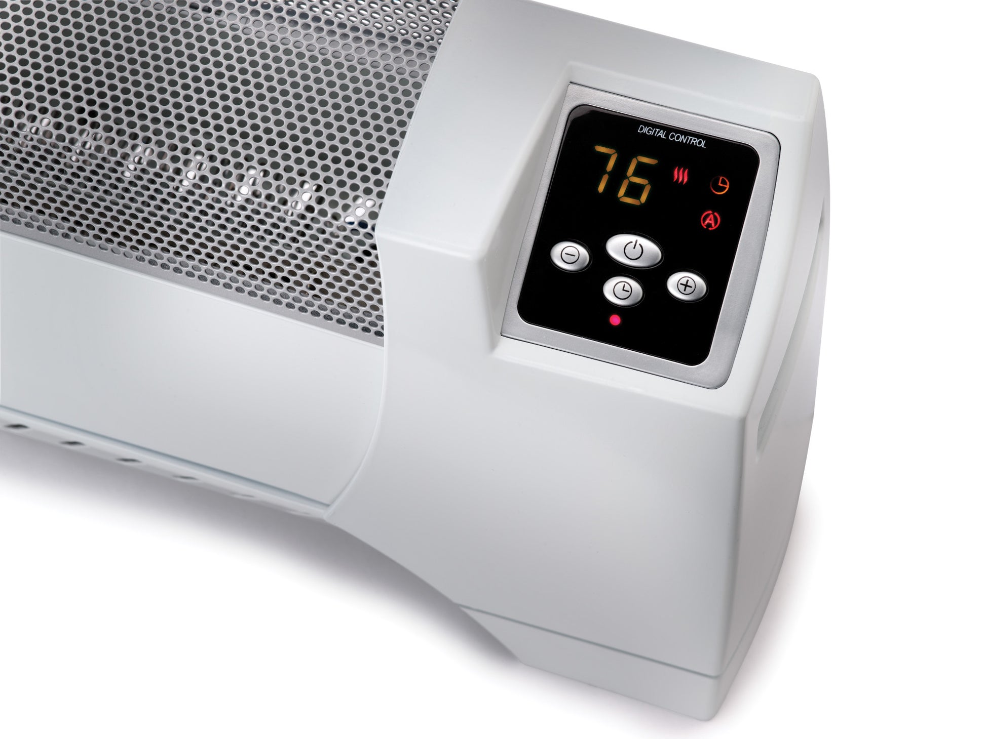 Convection heaters provide gradual, even heat without a fan, making them a quiet, nearly silent choice for bedrooms and living spaces. As the air near the heater is warmed, it rises and creates natural heat circulation which spreads throughout the room. Easy-to-read digital display, adjustable thermostat, and auto-off timer. Built-in safety features include tip-over switch and automatic overheat protection. This space heater is lightweight with carry handles for portability. Comes fully assembled. 3-year limited warranty.